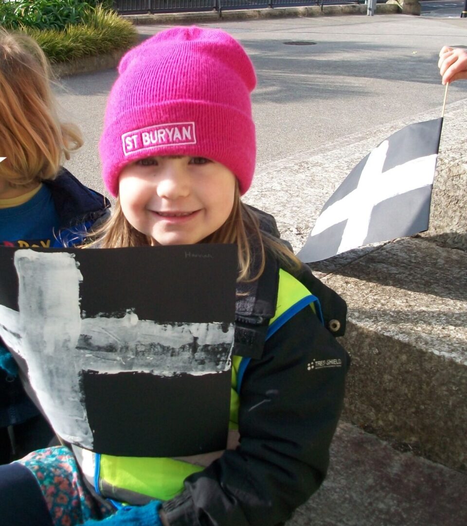 We are proud of our local heritage and we explore this through stories, songs, our Cornish language, food and so much more. We are also proud to involve children in our local celebrations for St Piran’s Day and Golowan Festival. For St Piran’s Day the children at nursery make pasties and create St Piran’s Flags, our eldest children go for a walk through Penzance to watch the local primary schools in the St Piran’s Day parade, ending at Morrab gardens where we listen to the presentation and join in with singing Old Trelawny. For Golowan Festival we make a range of crafts during the week that the children can take with them if they go into Penzance on the Saturday to enjoy Mazey Day which is the culmination of the Golowan Festival Week.