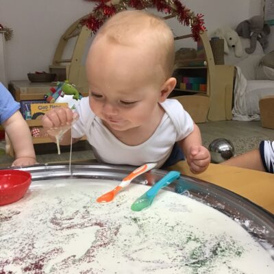 Our babies are continually exploring sensory activities to stimulate their senses in every way. Learning through fun is the BEST sort of play!