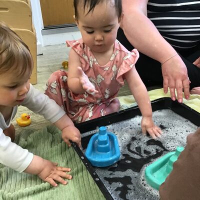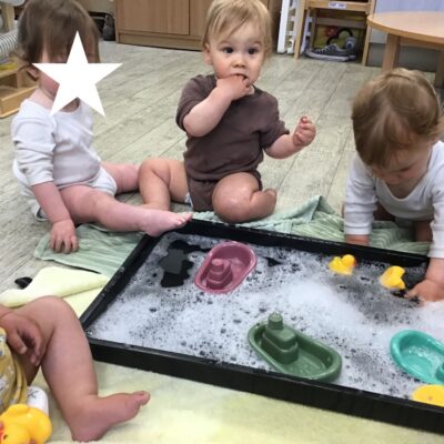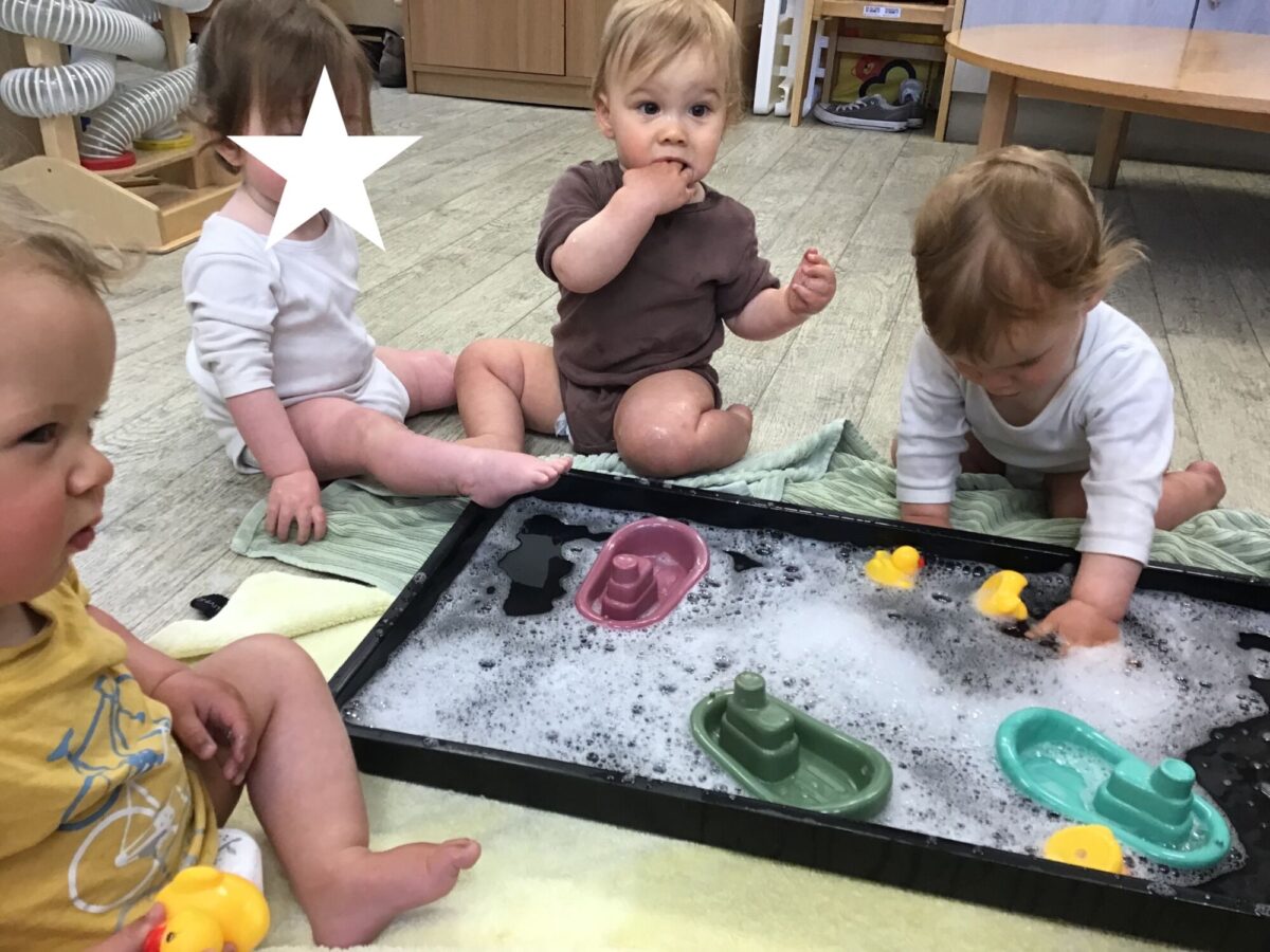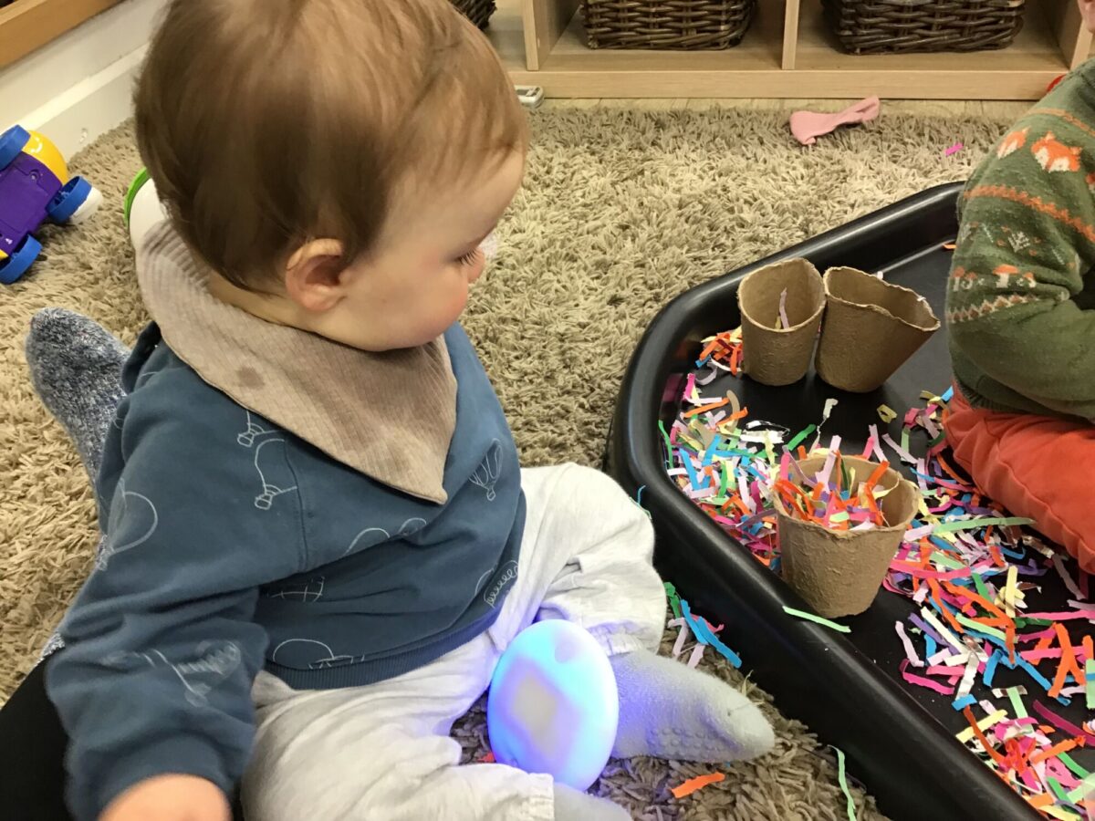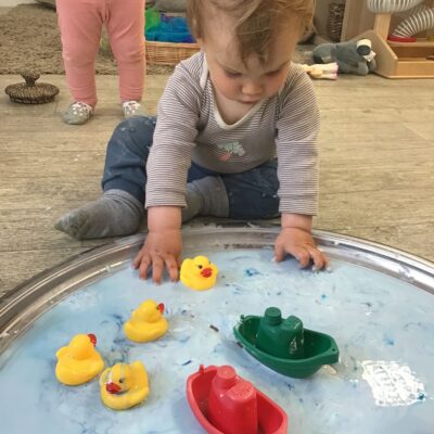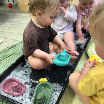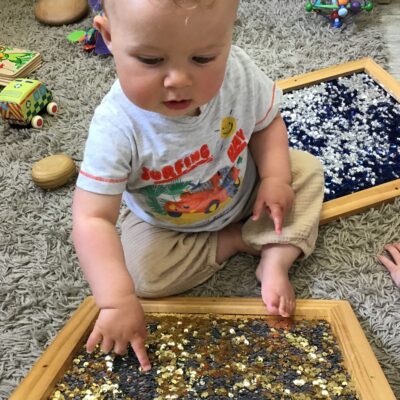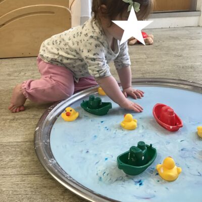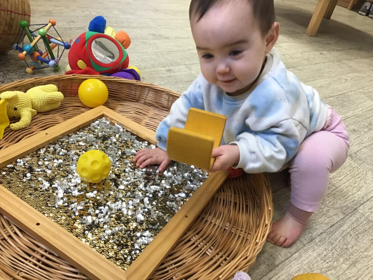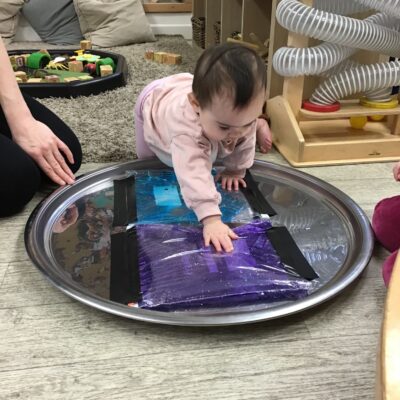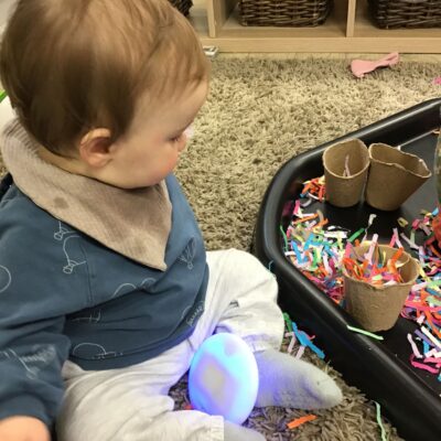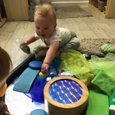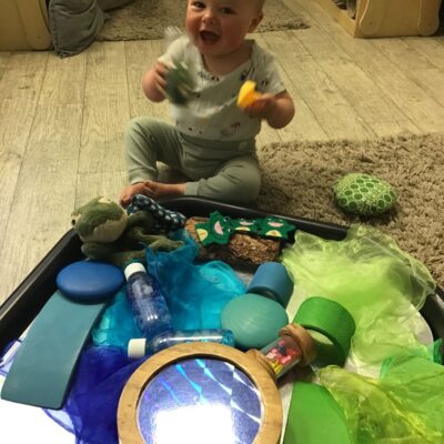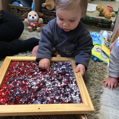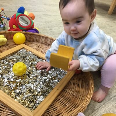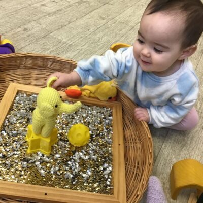 Our baby room staff are particularly creative when it comes to creating exciting sensory trays for the babies to explore. These sensory trays promote a wealth of memorable and exciting play and learning through stimulating all the babies senses.