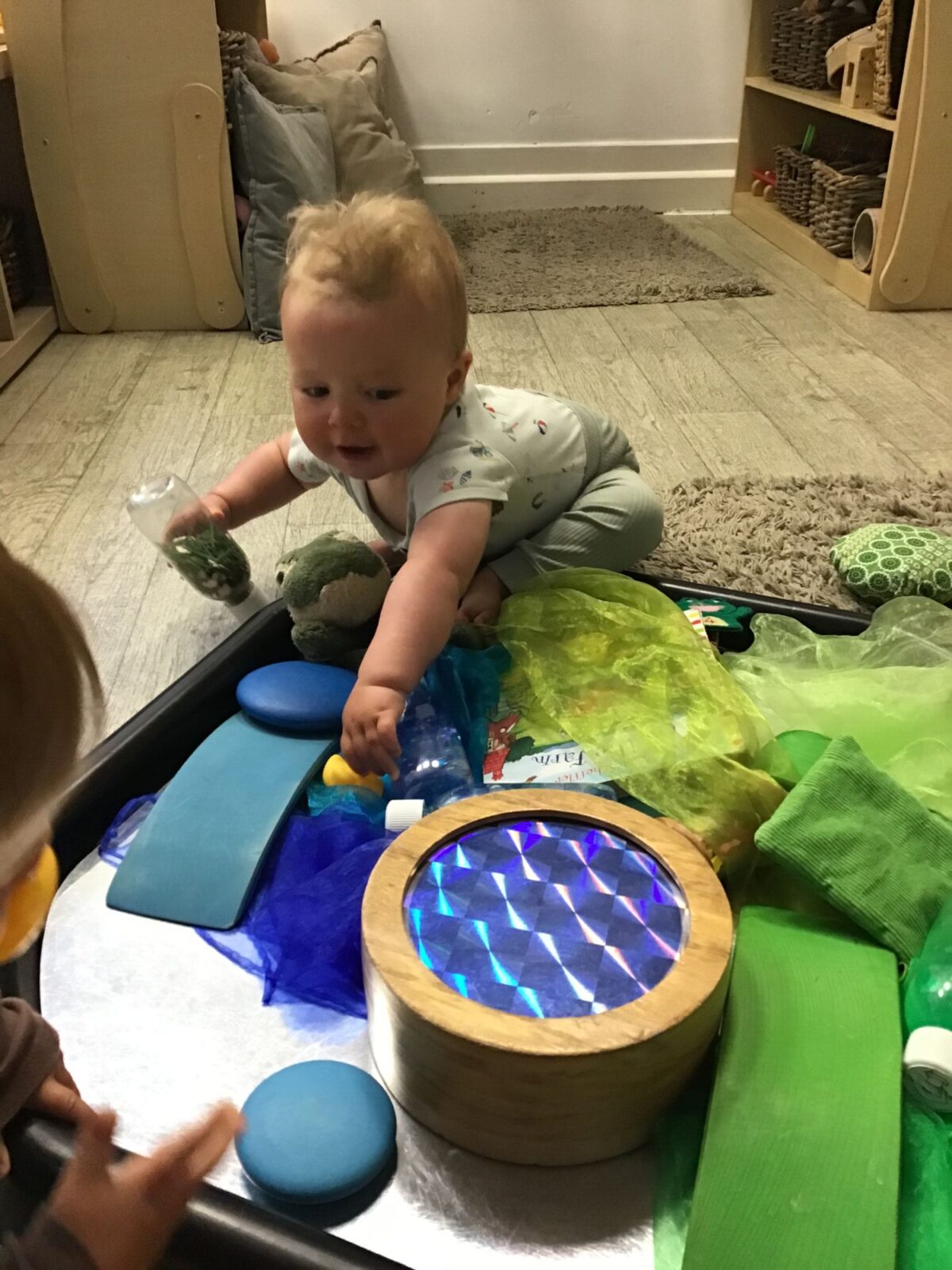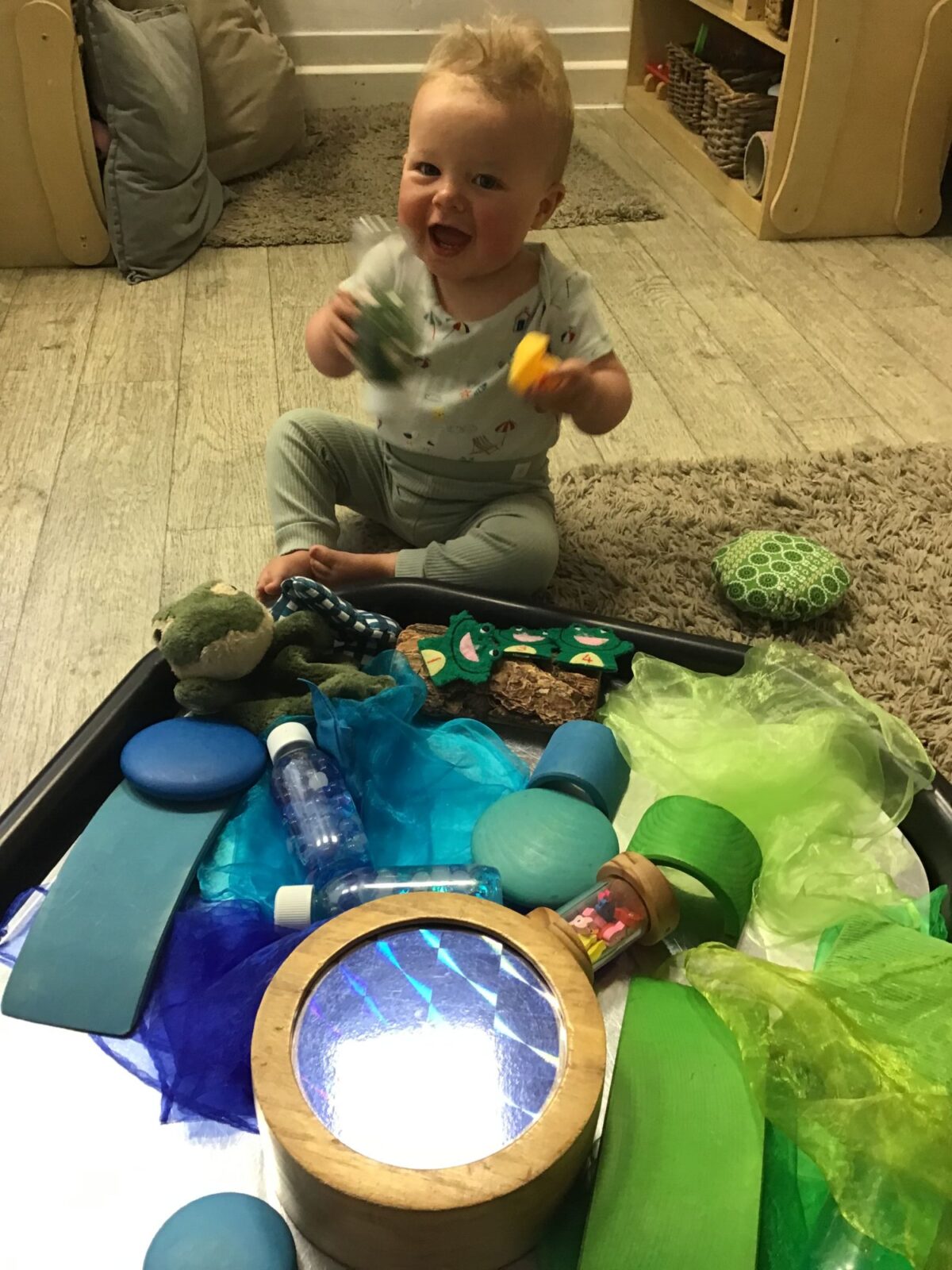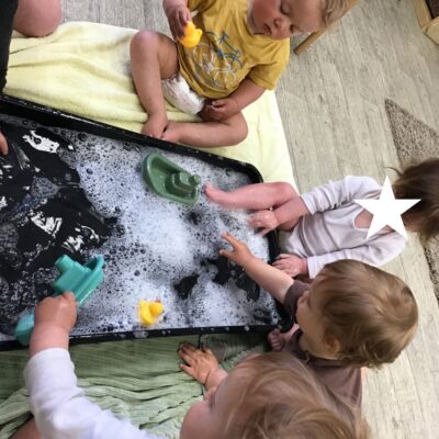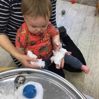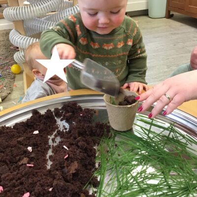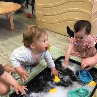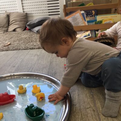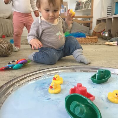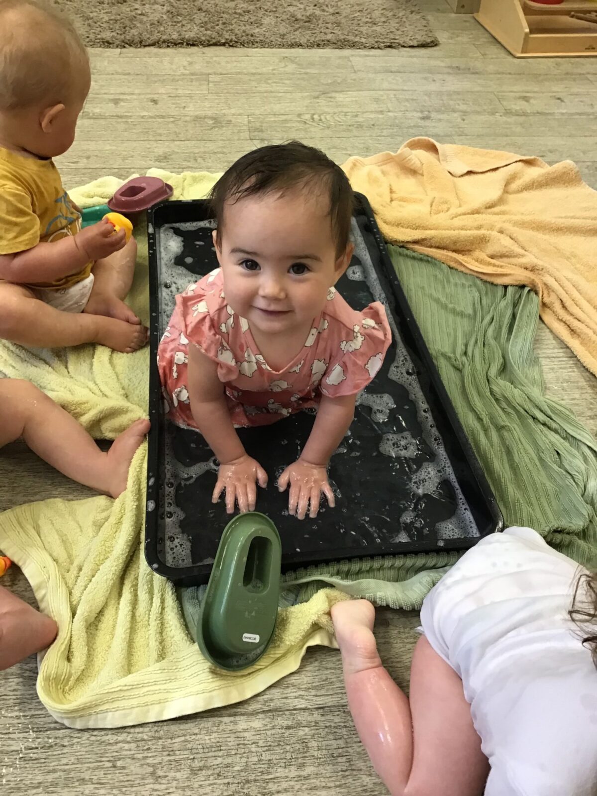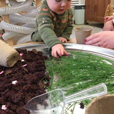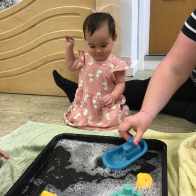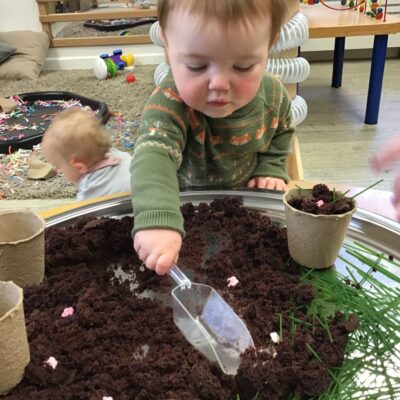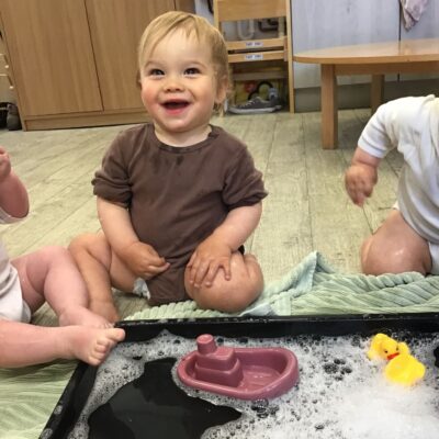 Our baby room staff are particularly creative when it comes to creating exciting sensory trays for the babies to explore. These sensory trays promote a wealth of memorable and exciting play and learning through stimulating all the babies senses.