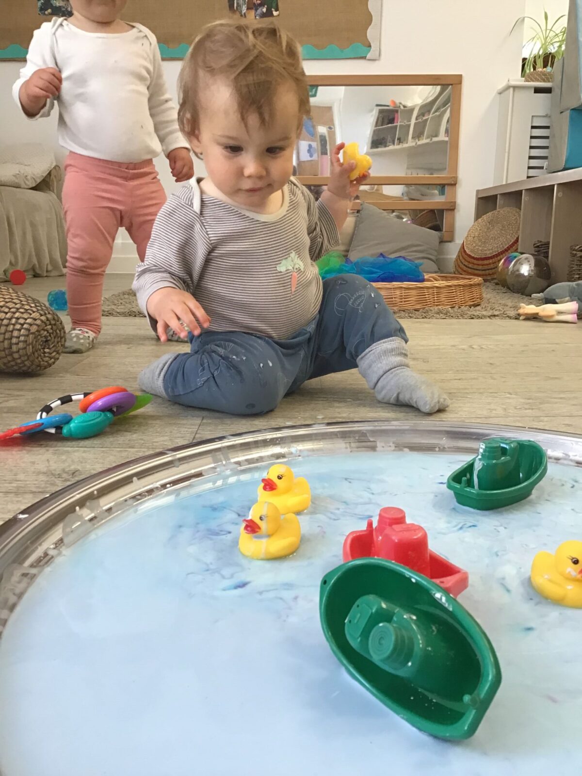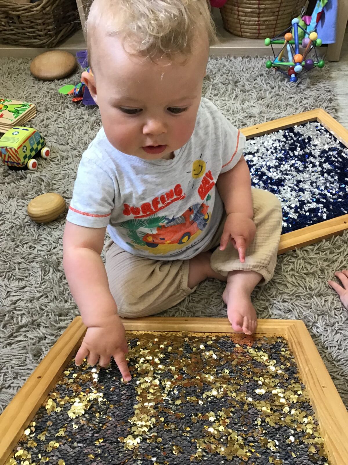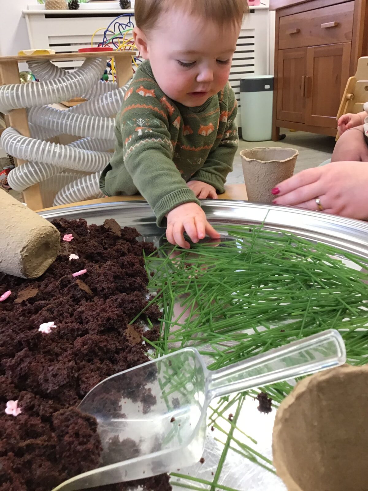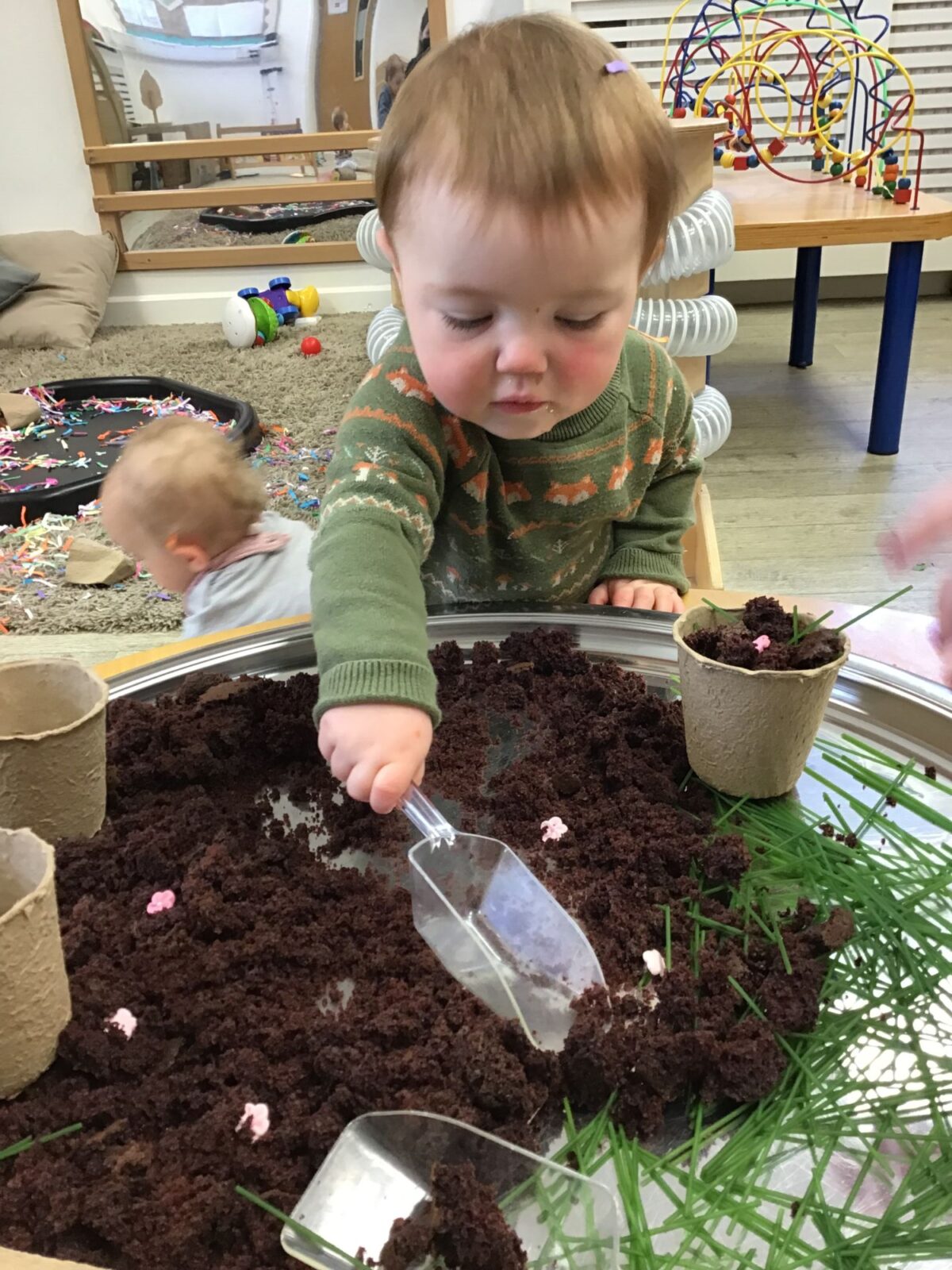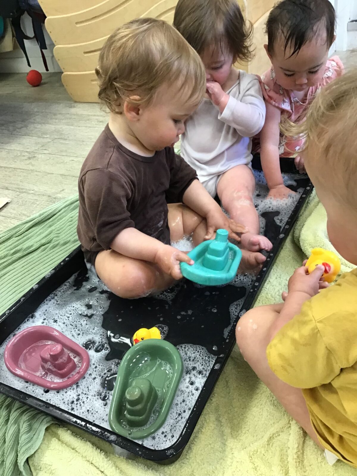 Our baby room staff are particularly creative when it comes to creating exciting sensory trays for the babies to explore. These sensory trays promote a wealth of memorable and exciting play and learning through stimulating all the babies senses.