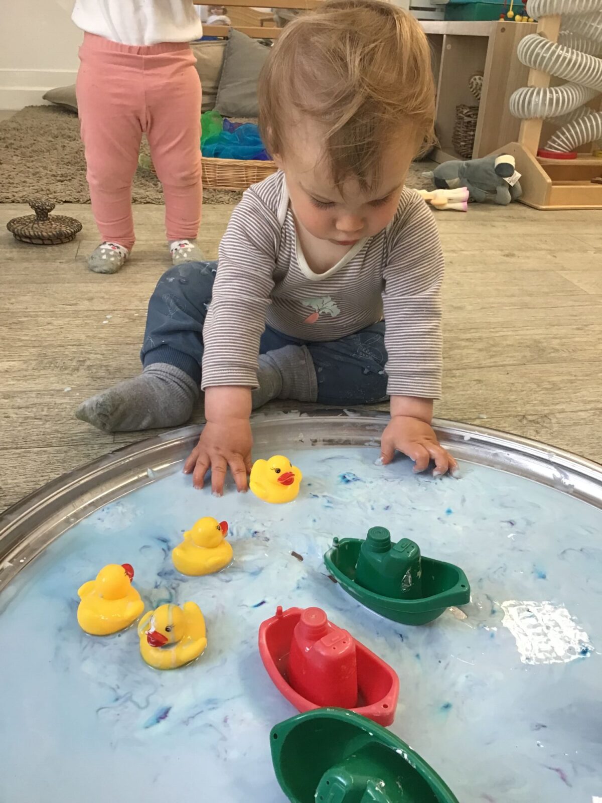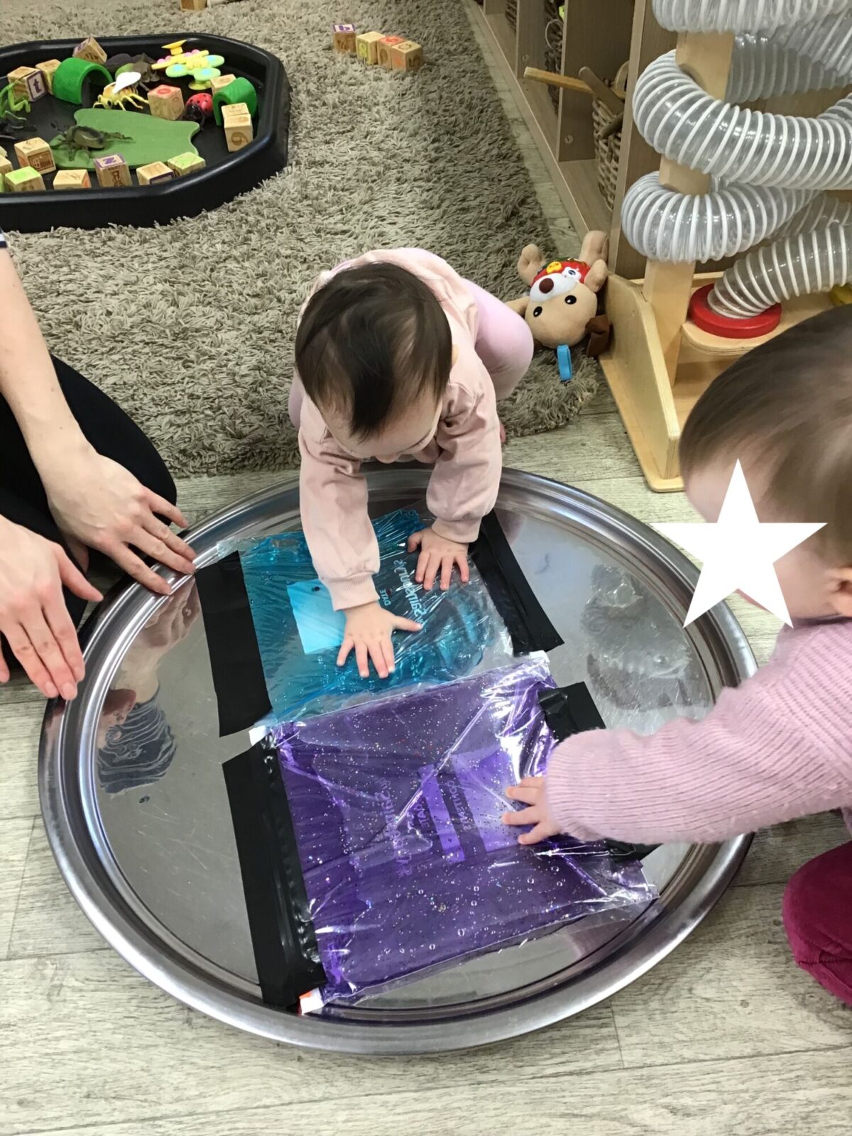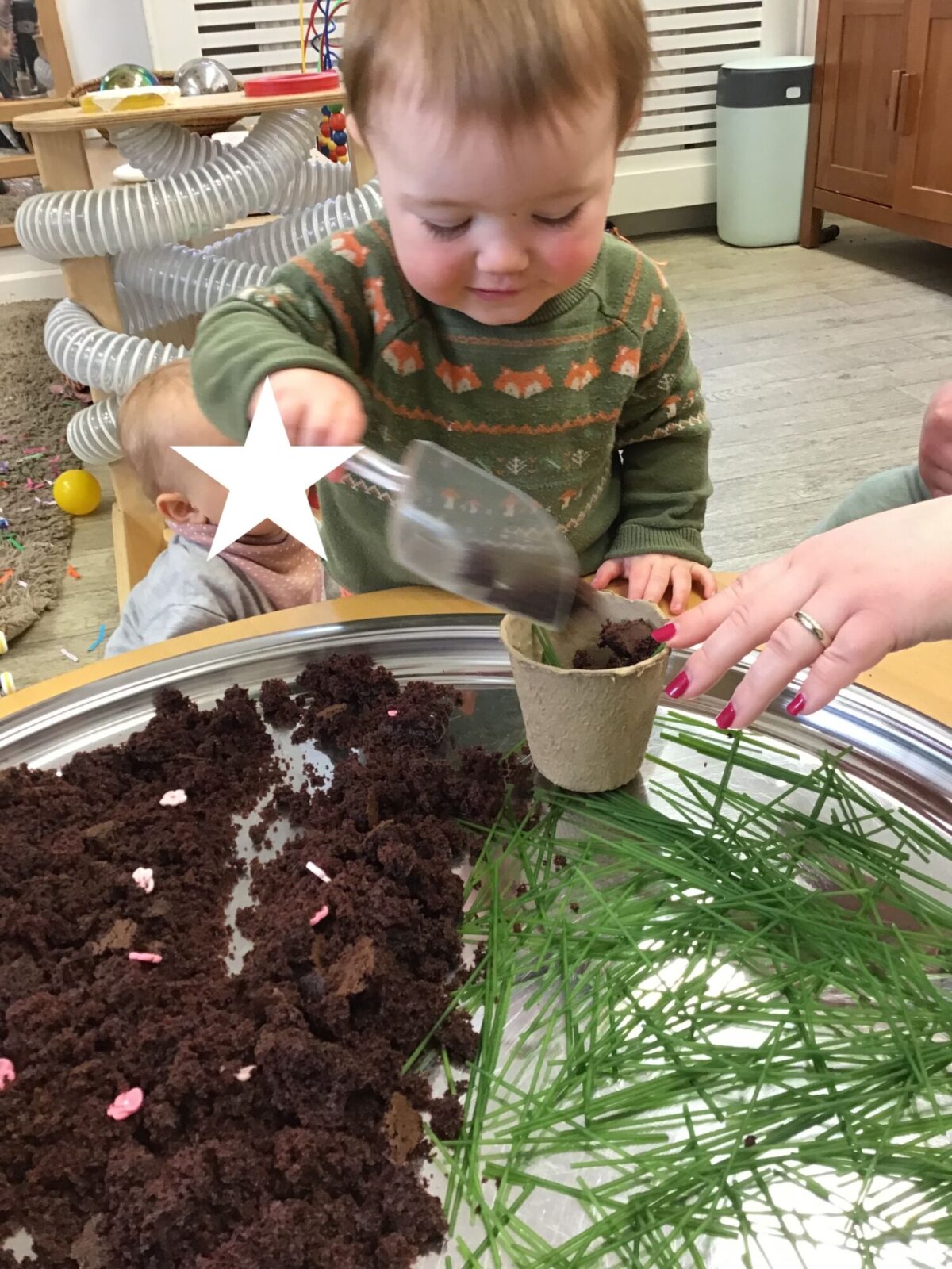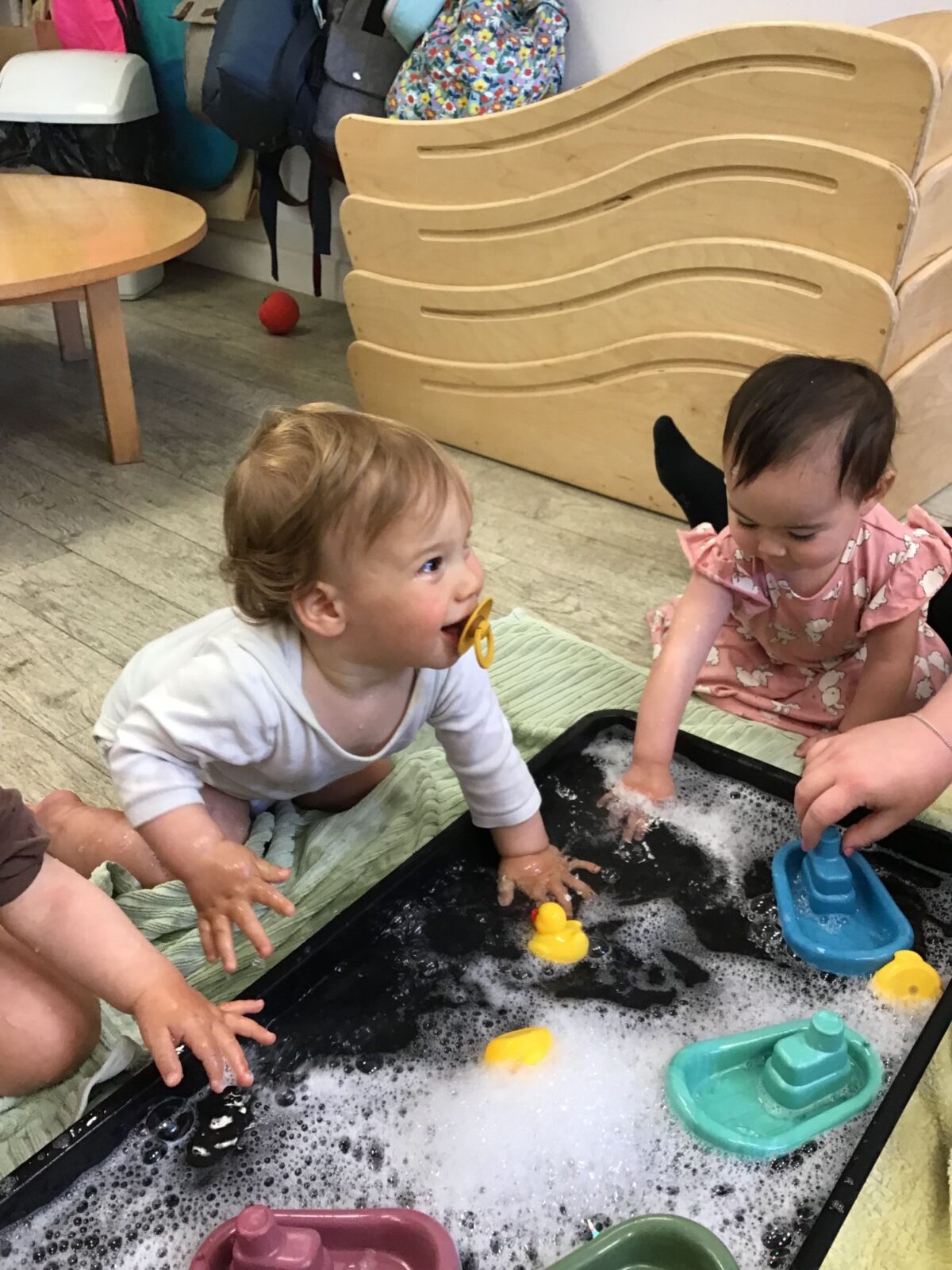 Our baby room staff are particularly creative when it comes to creating exciting sensory trays for the babies to explore. These sensory trays promote a wealth of memorable and exciting play and learning through stimulating all the babies senses.
