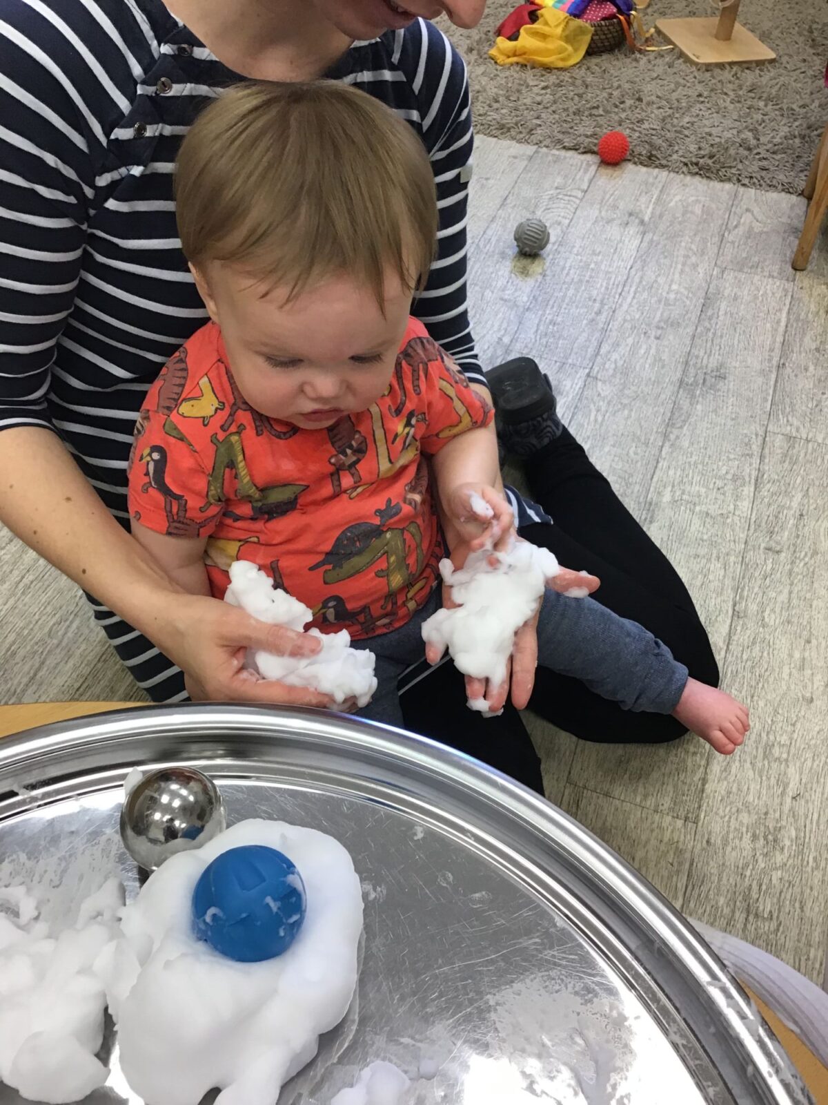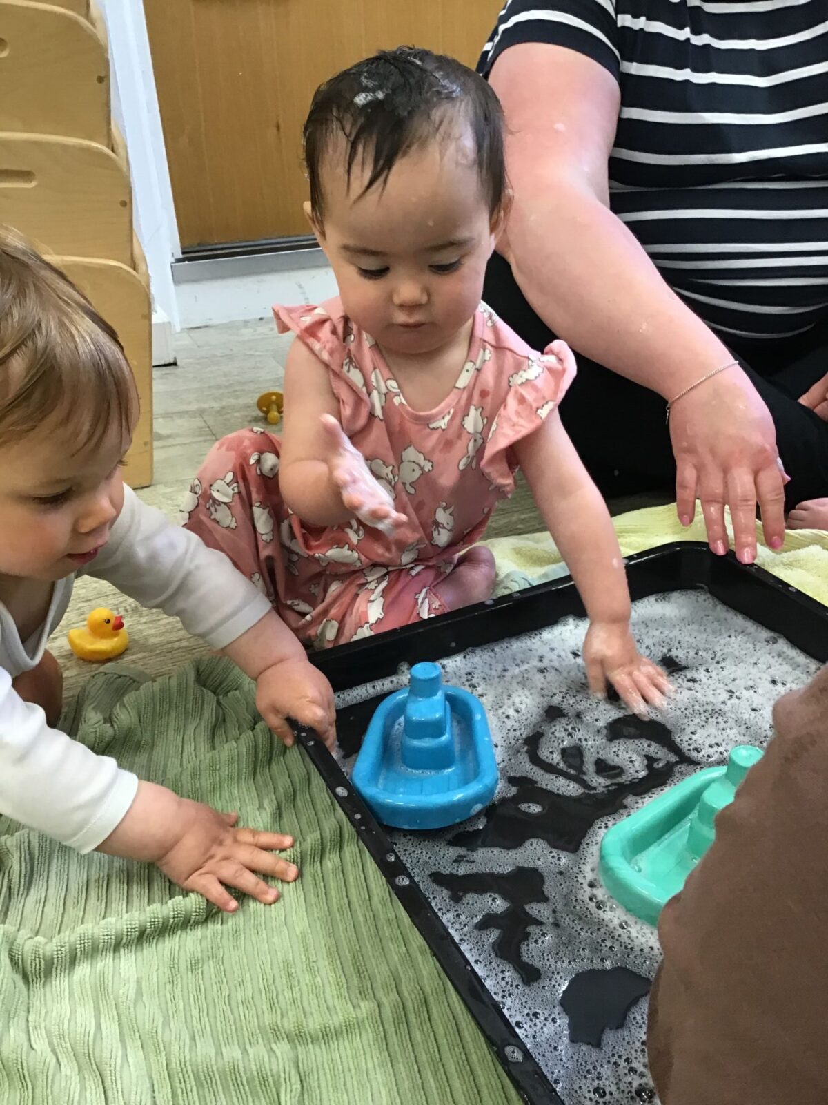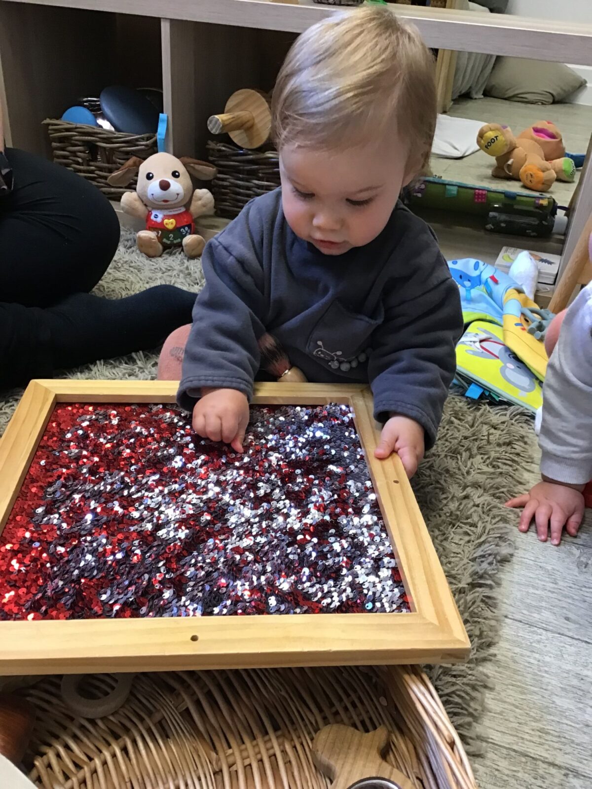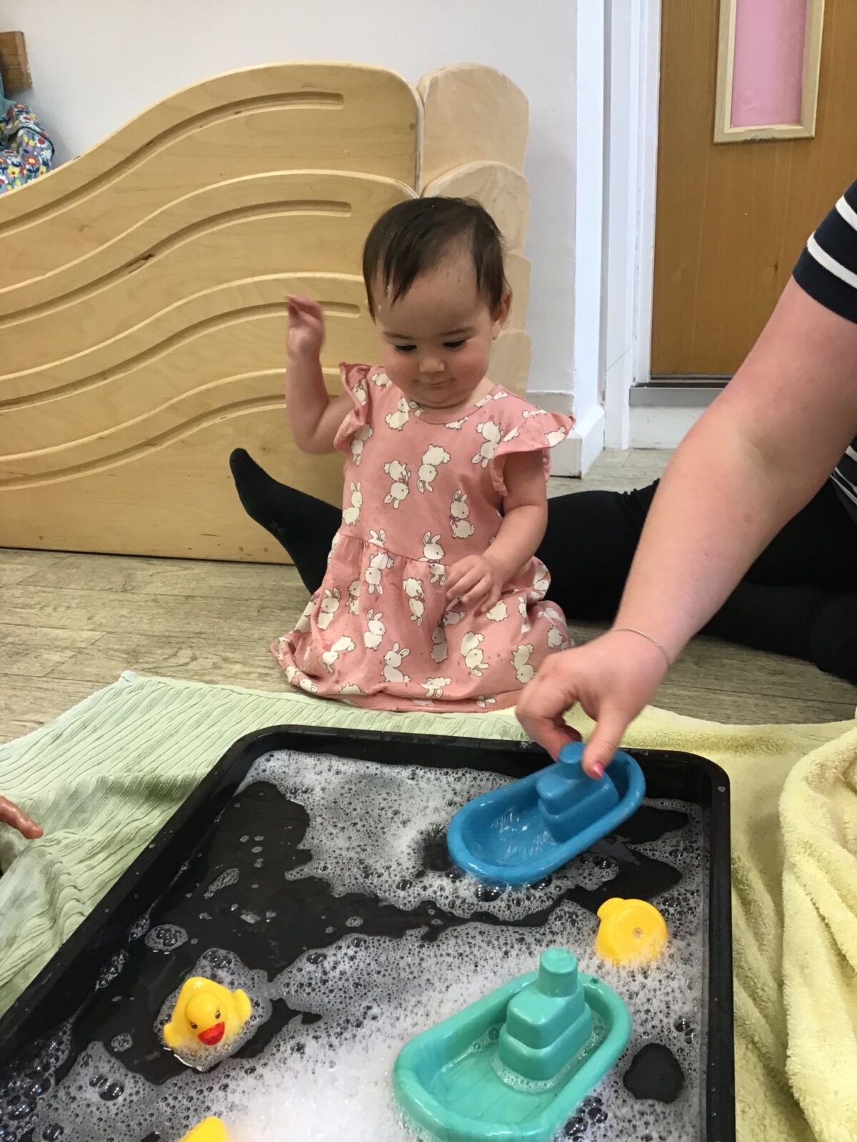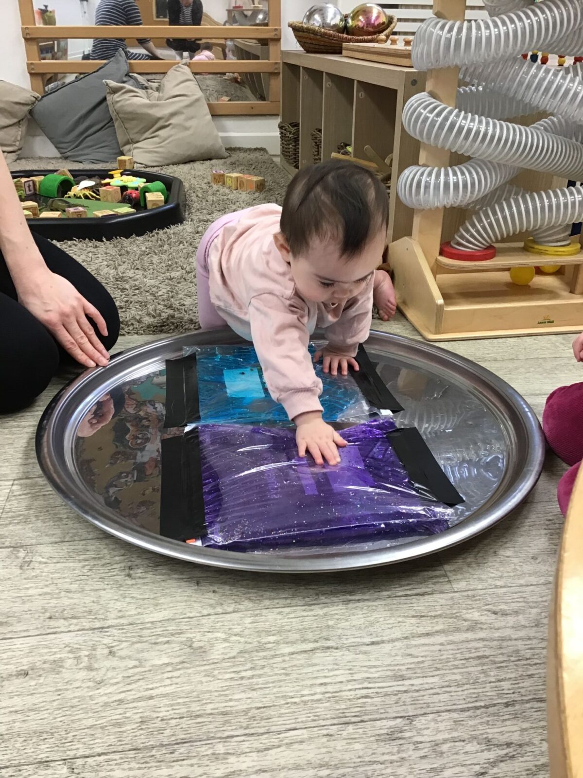 Our baby room staff are particularly creative when it comes to creating exciting sensory trays for the babies to explore. These sensory trays promote a wealth of memorable and exciting play and learning through stimulating all the babies senses.