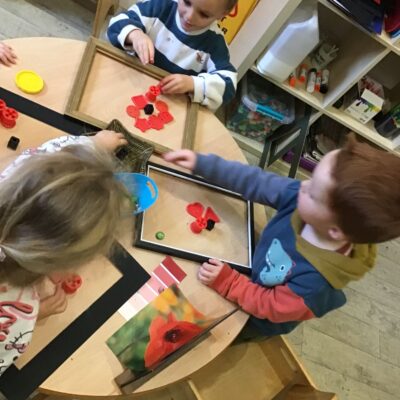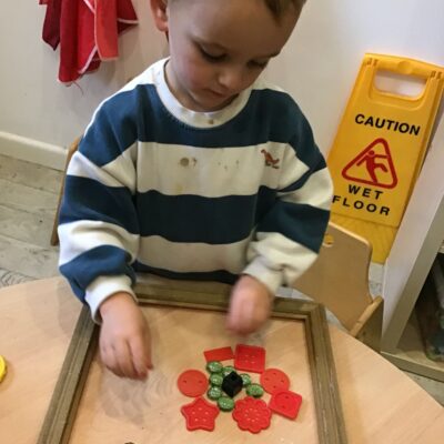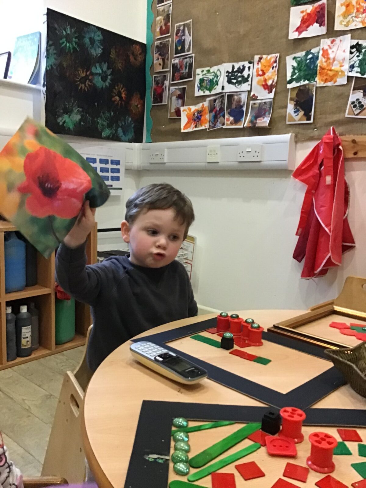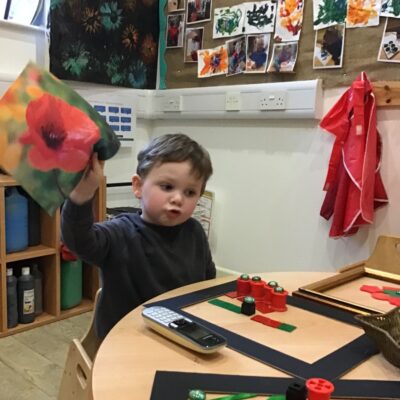 We always celebrate Remembrance Day at nursery with age appropriate activities and conversation for the children to appreciate and understand the importance of the day. Children made poppy art work and held a two minute silence at 11am at nursery. Some of our Pre School children attempted a walk to the War Memorial on the Promenade to look at the poppy wreaths that had been placed there during the parade on Sunday. Unfortunately – the wind and waves on the promenade halted us in our tracks and we made a swift retreat to the library to shelter. We still managed to spot lots of poppies on our walk and talked about why people wear them and have them on display in shop windows and on their cards.
