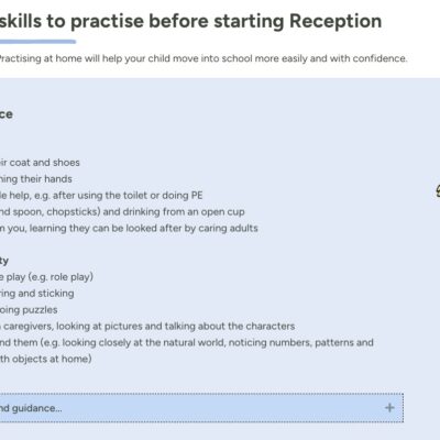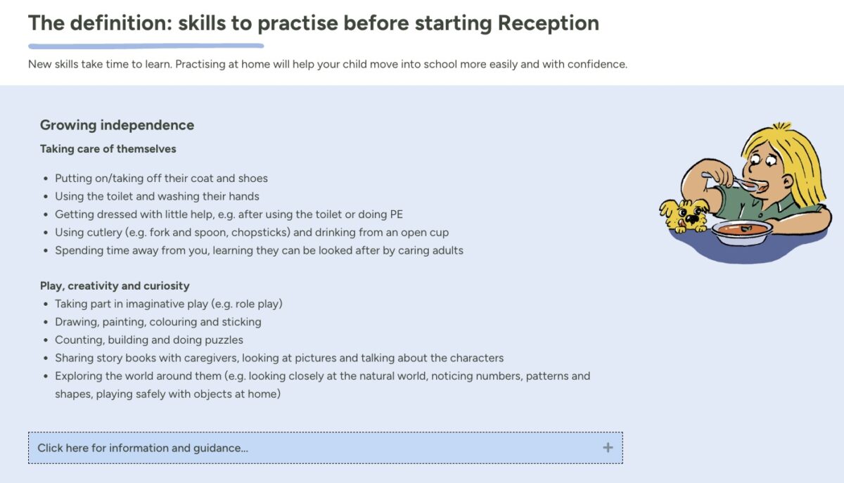 The online guide is all about supporting your child to be ready for starting school. I’ve attached a few screenshots from the website for you too. There are some super top tips that reflect the advice we give in our ‘getting ready for school’ leaflet we handed out in September.