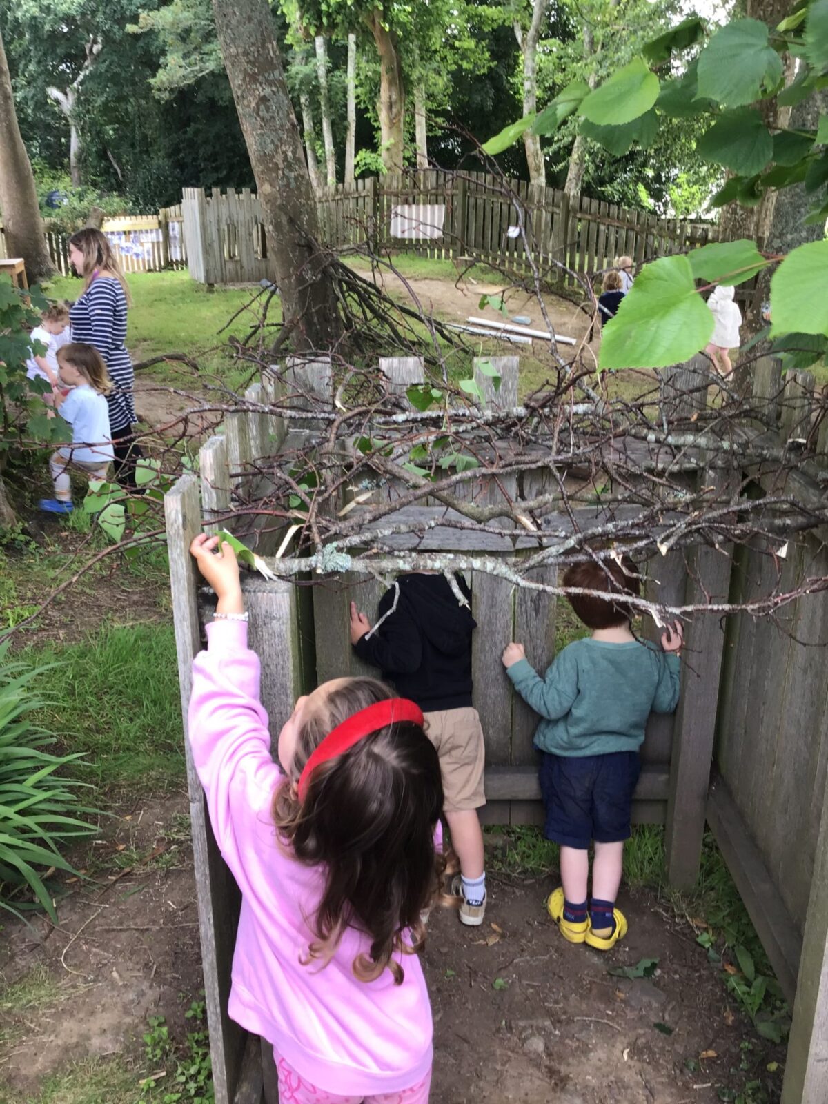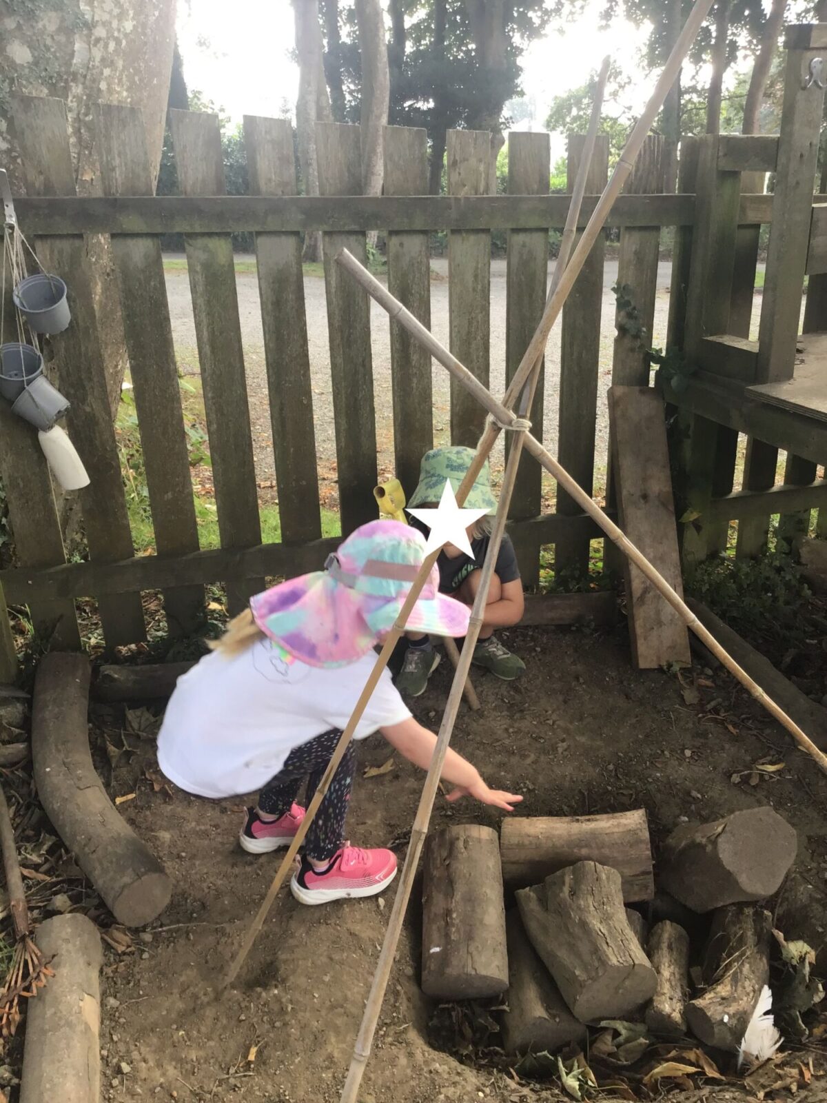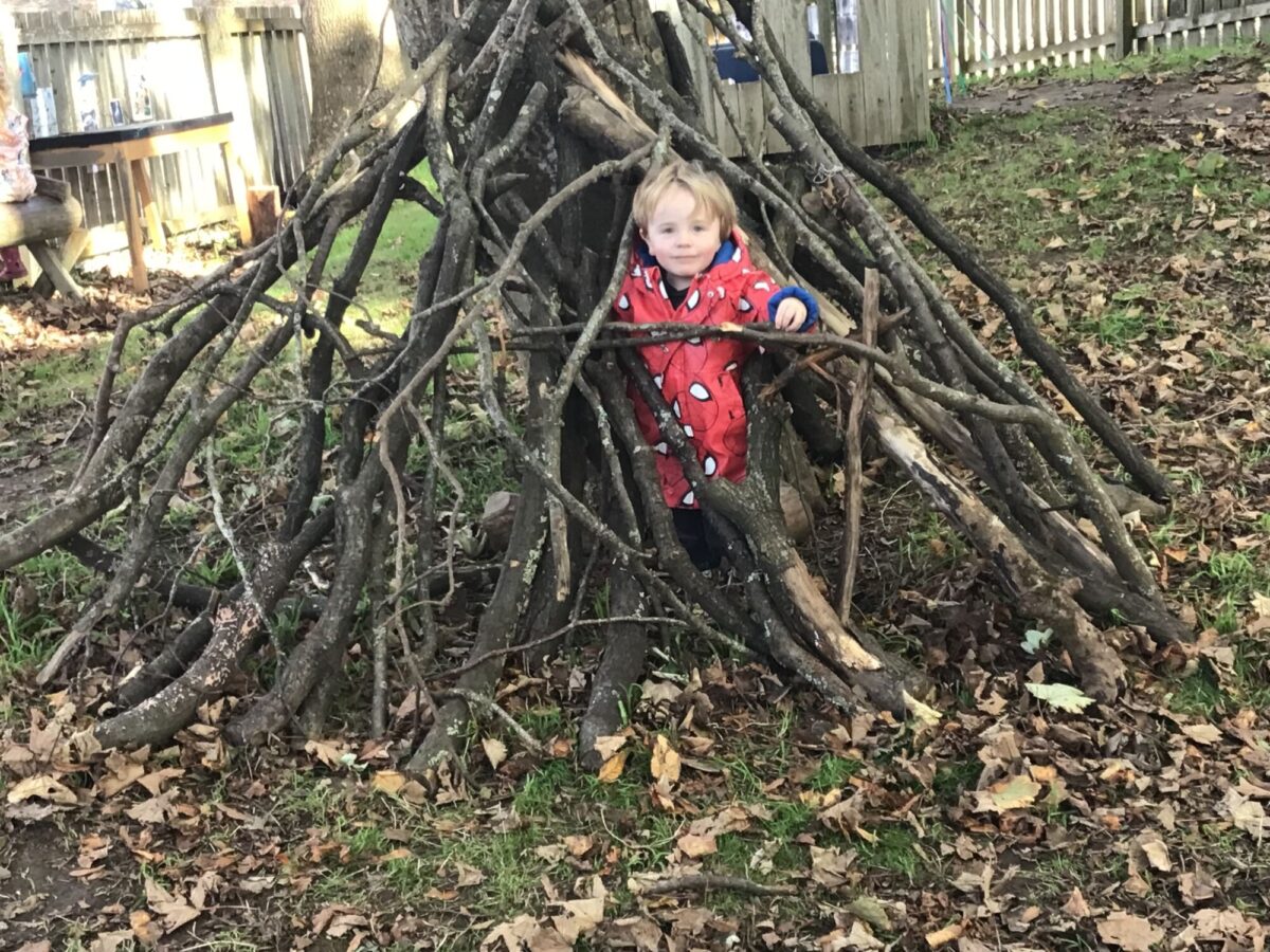 We are continually impressed by the children’s construction skills in our duck garden area. They create impressive dens and structures with the sticks! They have also worked out how to safely create a swing to hang from too!