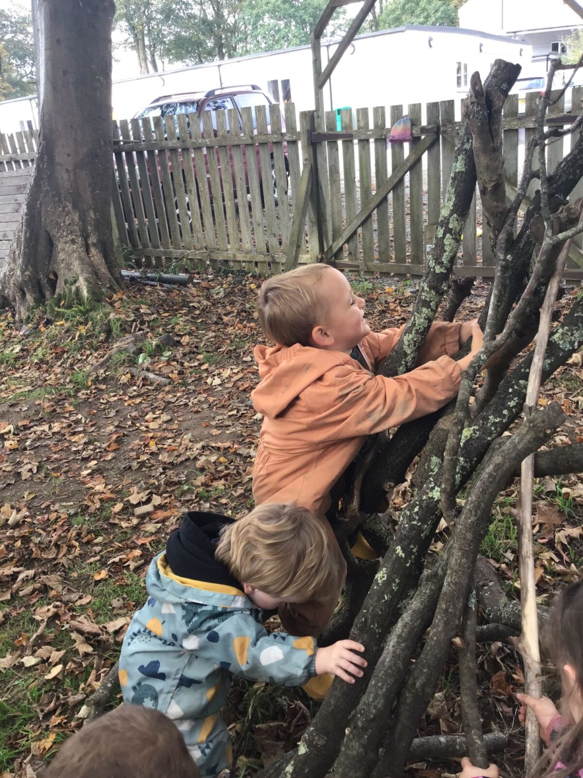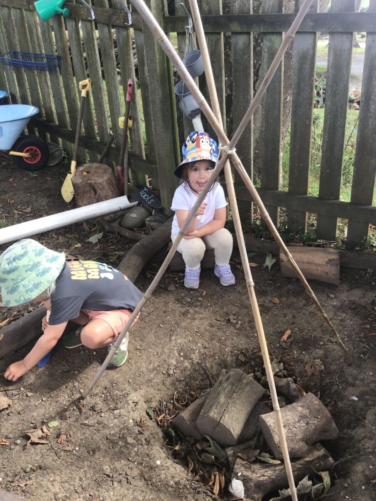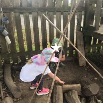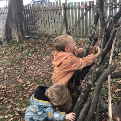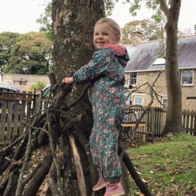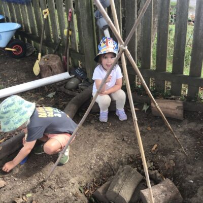 We are continually impressed by the children’s construction skills in our duck garden area. They create impressive dens and structures with the sticks! They have also worked out how to safely create a swing to hang from too!