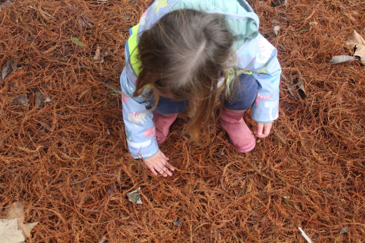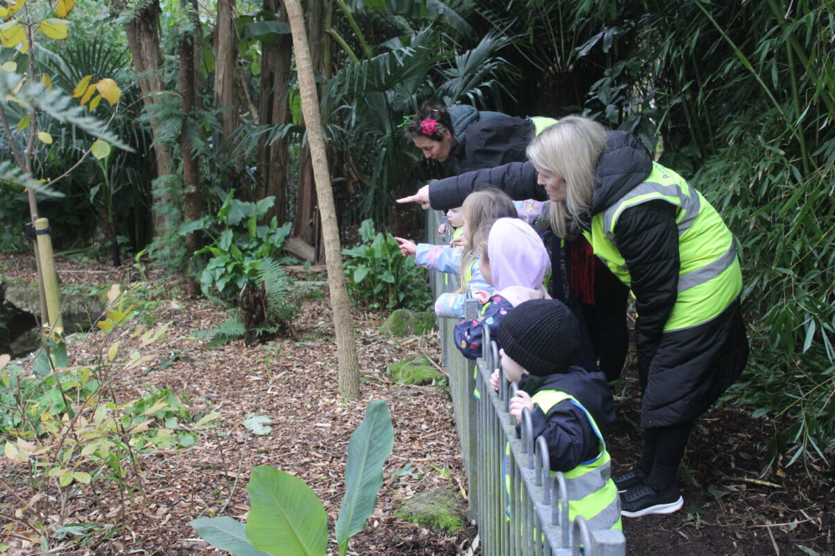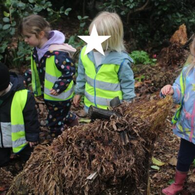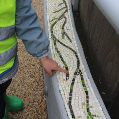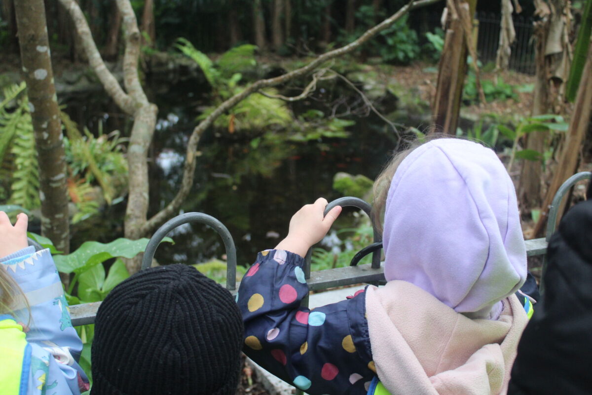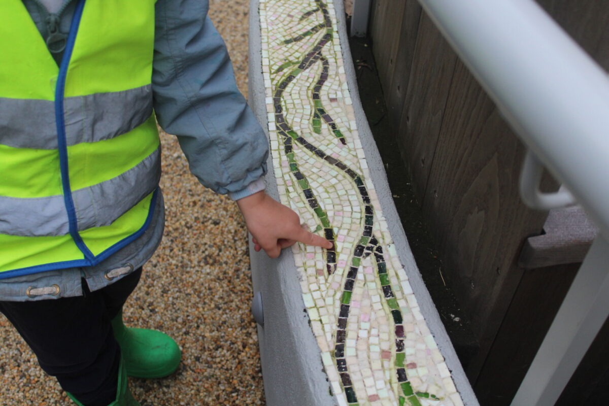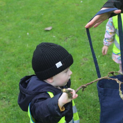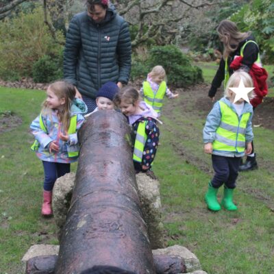 Along the way the children were looking for details in the natural environment, things such as cobwebs behind the bark in the trees and different shapes and colours in the plants. There were some cut down plants that the children thought looked like pigs! Near the fountain we saw foot prints in the mud and the children showed curiosity wondering what may have made the prints. On our way back to the gardeners house we stopped and looked at the ‘looking tree’ which has nodules that look like eyes which is how it gets it’s name! Outside the gardener’s house we looked at the textures on the plants in the sensory garden and the mosaic tiles too. The children showed lots of curiosity and asked brilliant questions.
