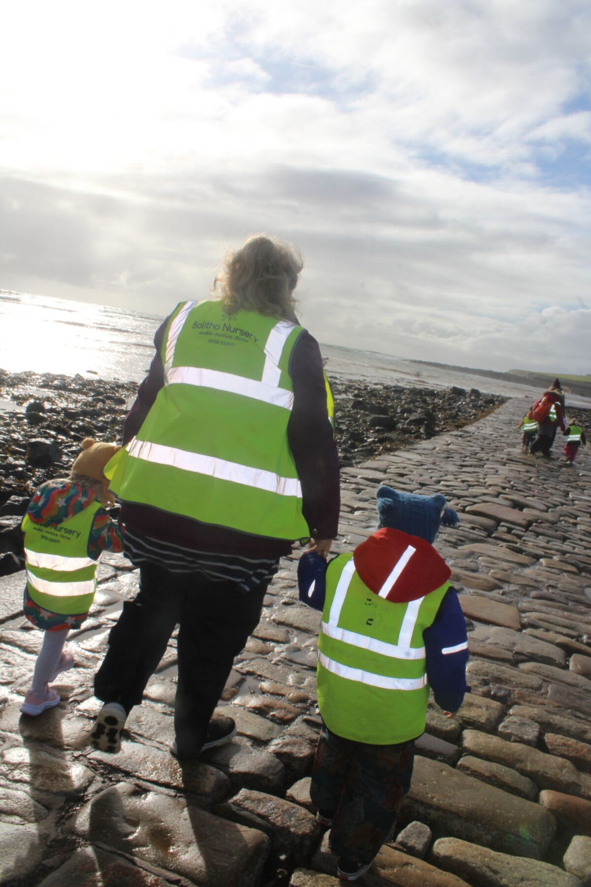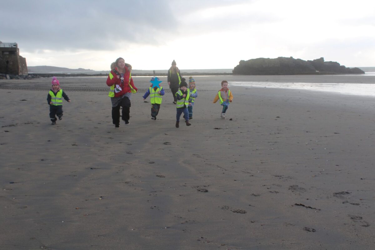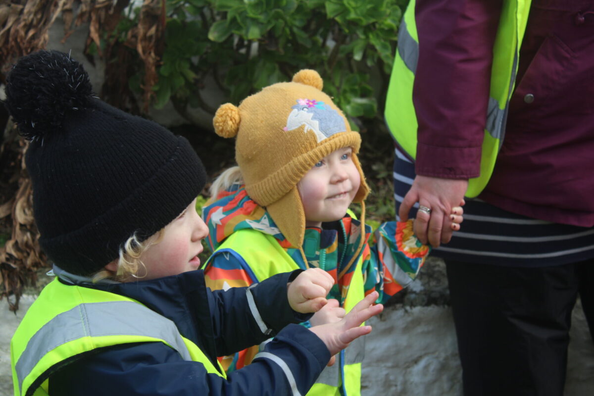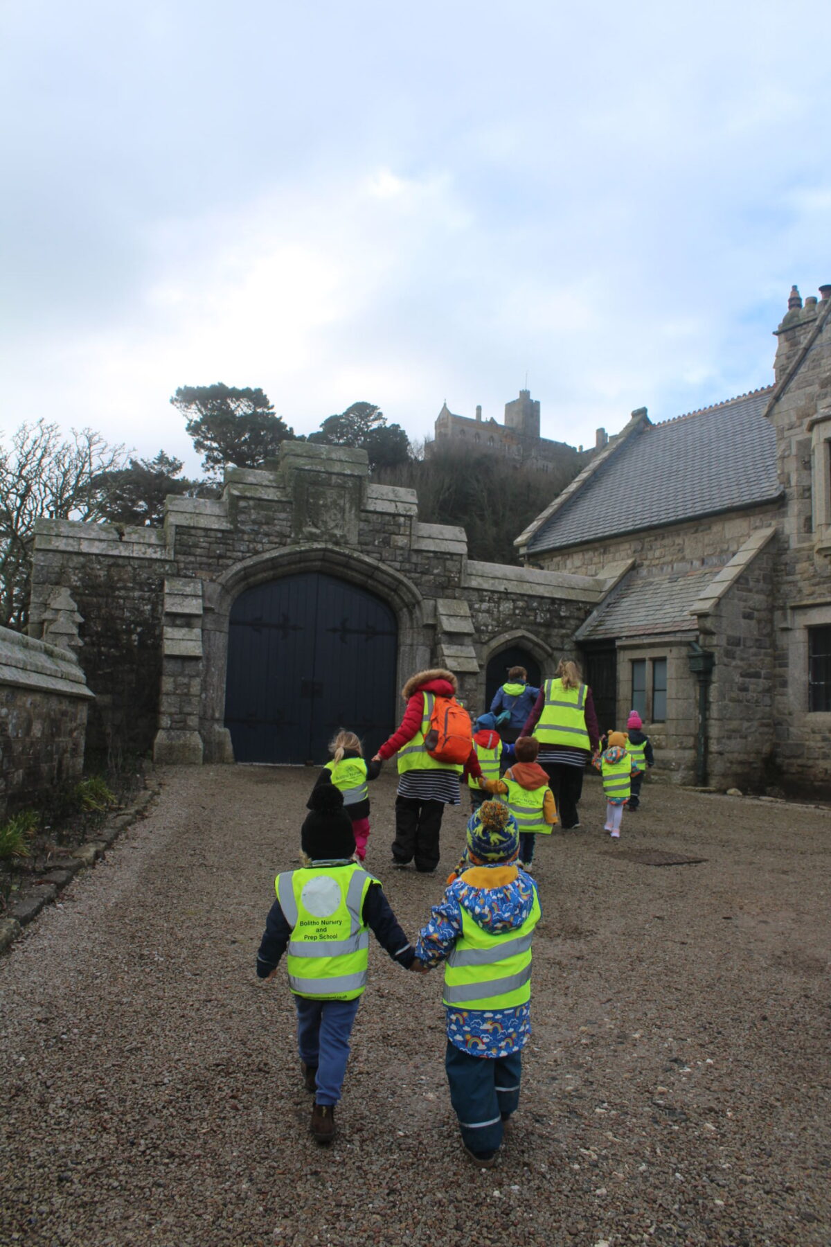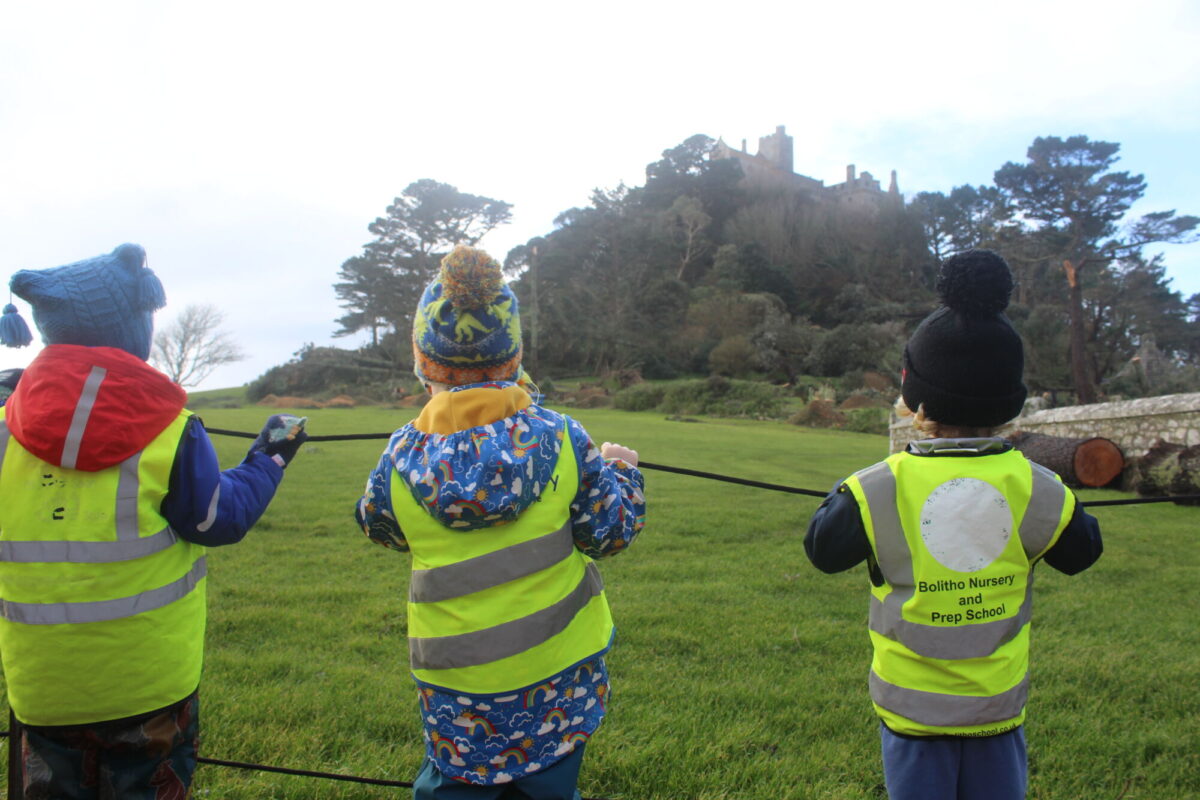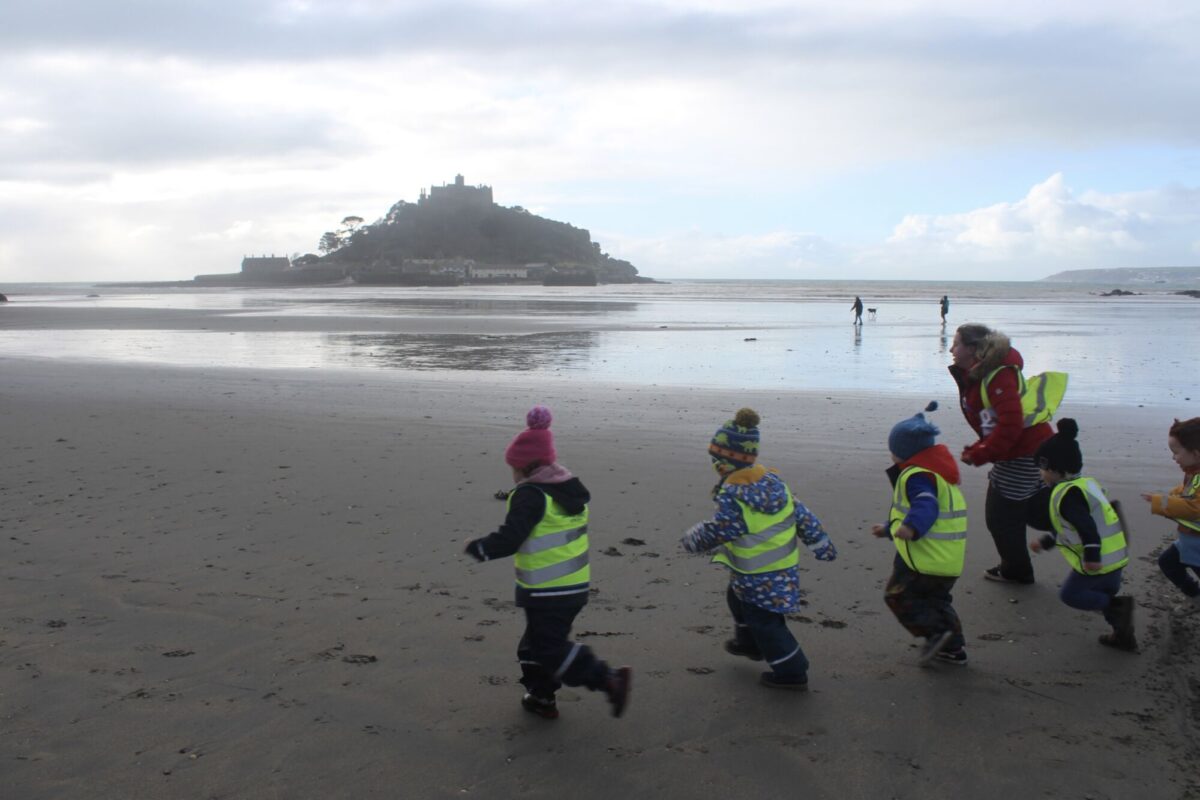 We started our adventure today with a walk from the nursery to Penzance bus station where we catch the number 2 bus to Marazion! The children were excited to spot the sights on the way from looking out the bus window. They loved pressing the button to request the bus stopped at our stop. They were very polite saying thank you to the bus driver as we got off the bus. We then spotted the mount as we walked towards the causeway!