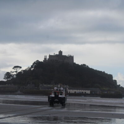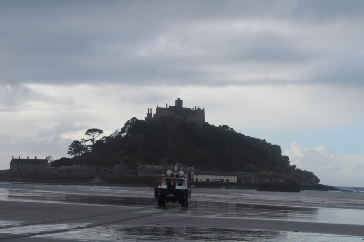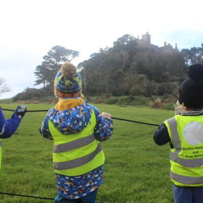 When we arrived in Marazion the causeway was slightly later opening than anticipated, due to the waves. We decided to have our snack and play some games on the beach! We were also very lucky to be able to watch the amphibious vehicles, the St Michael, take passengers from the beach to the island. The children watched in awe as the boat drove across the sand and then floated across the sea to the island.