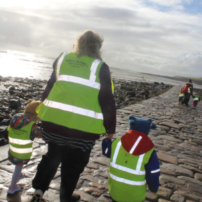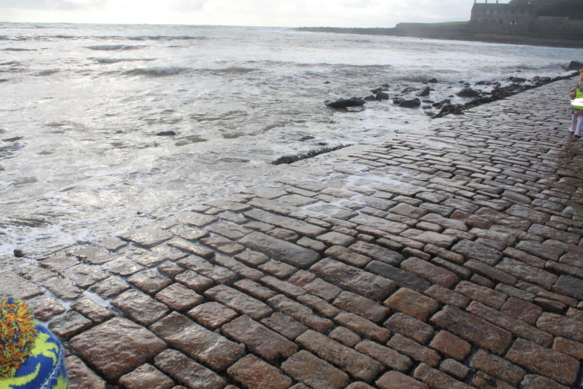 Once the waves had cleared, we were able to start our walk to the island across the causeway where Kerry was eagerly waiting for us to arrive. We had lots of conversation about the tide and how it makes the sea move, the sand uncover and the causeway too.