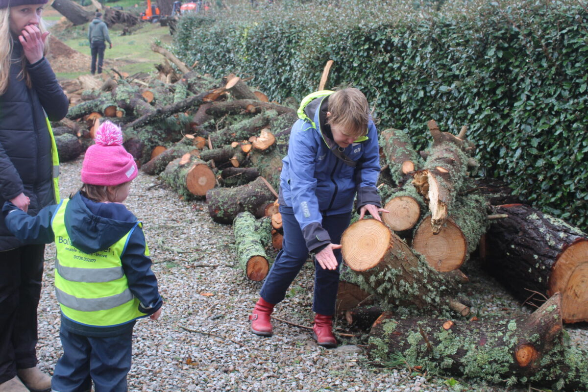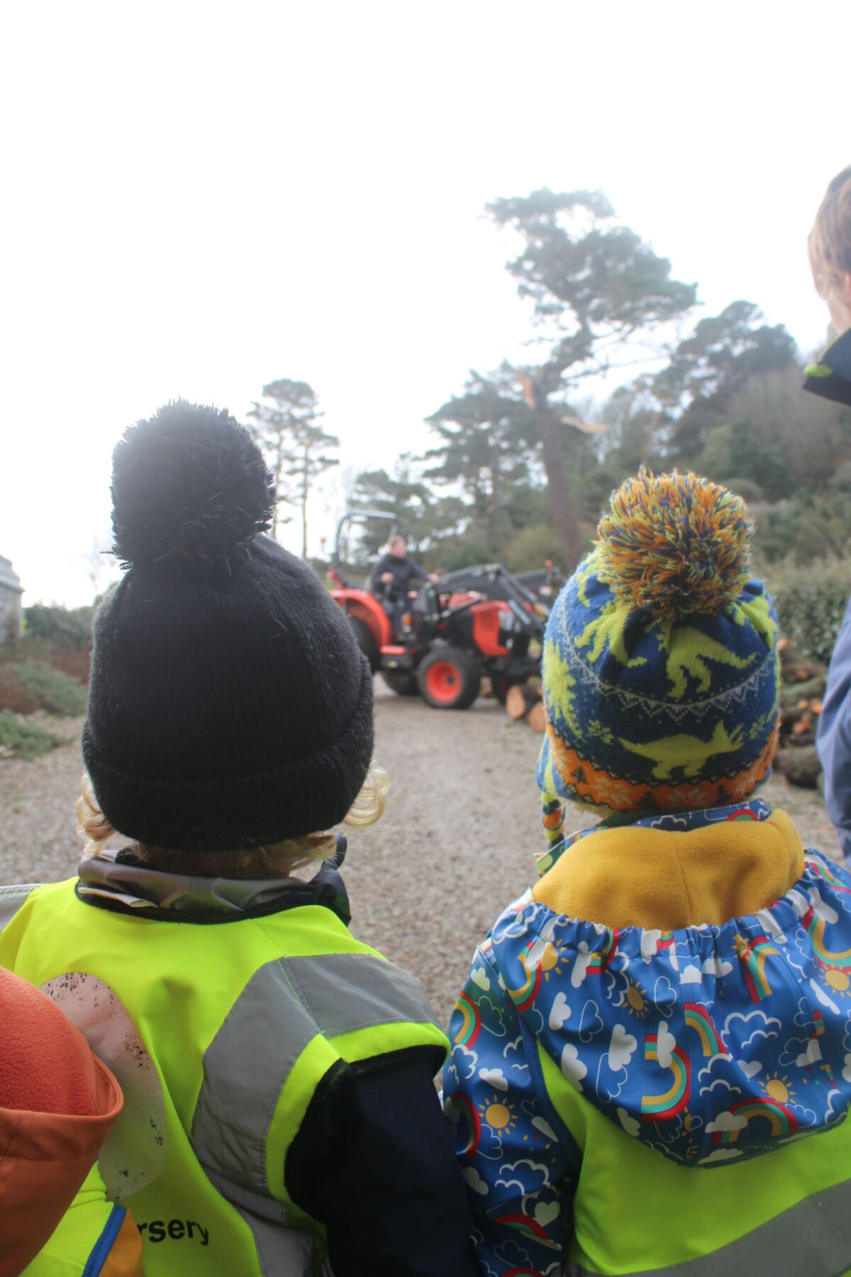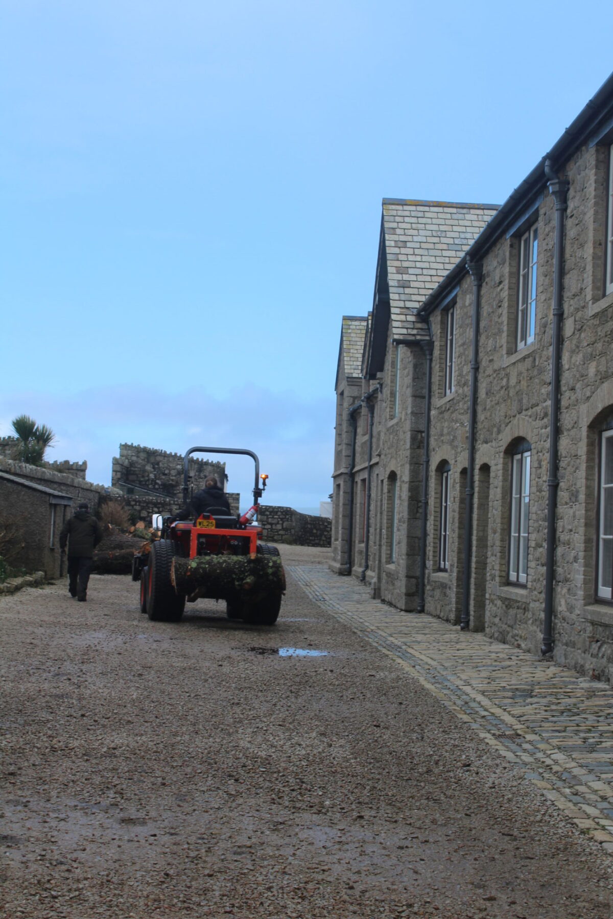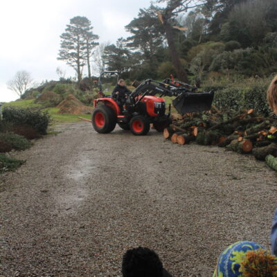 Kerry took us through the private entrance (as we were VIP Very Important People visiting!) where we could watch the team of gardeners who were hard at work clearing the storm damage. They were cutting some of the larger trees into large wood rounds and moving them with a small tractor, and they were using a chipper to chip some of the smaller branches.