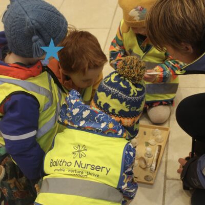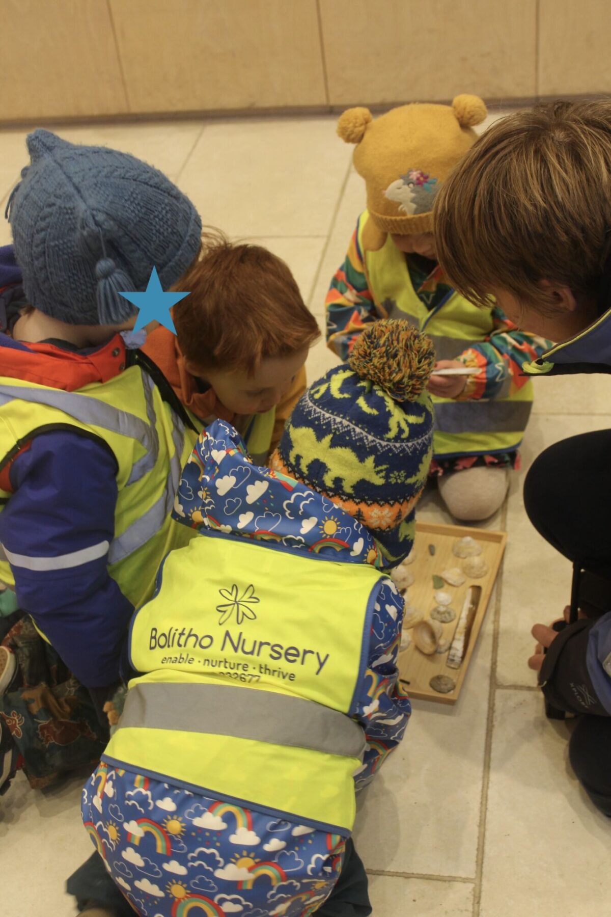 Whilst we were completing a loo run before heading back, the children explored Kerry’s beach treasures tray and asked fantastic questions! ‘Where did you find them?’ ‘What are these called?’