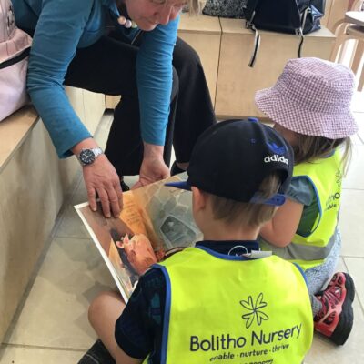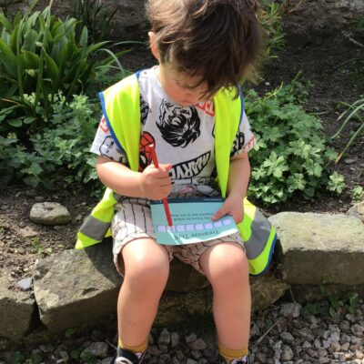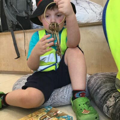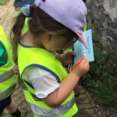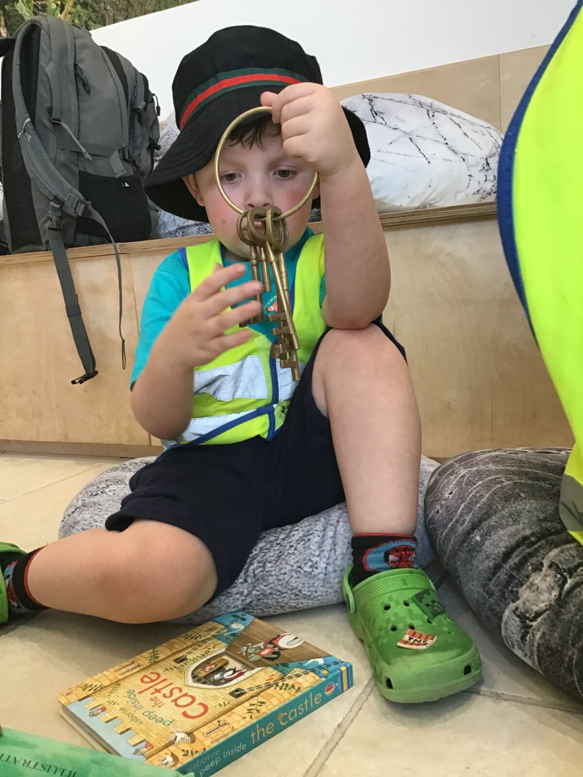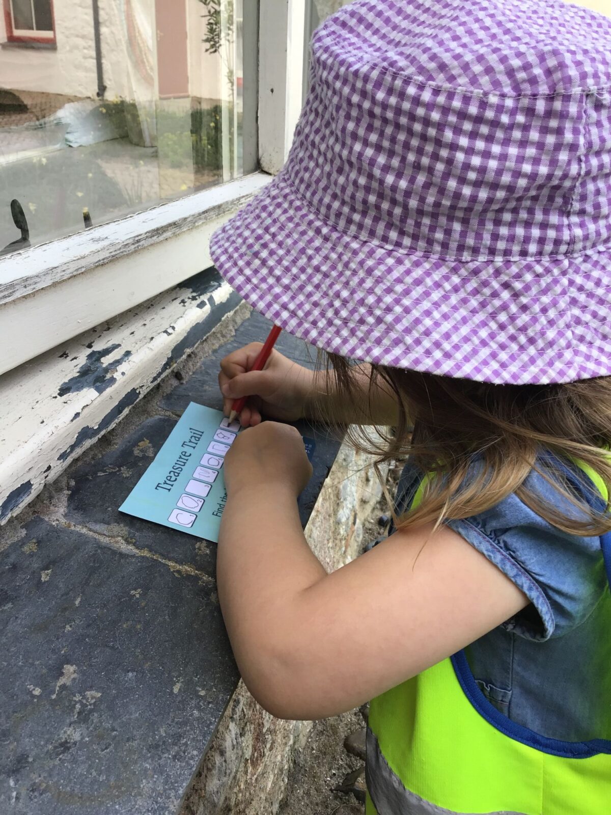 We explored a treasure trail, taking us all around the island village. The children really impressed us with their ability to recognise letters and numbers on the trail signs. They were amazing at having a good go writing them on their treasure trail cards too!