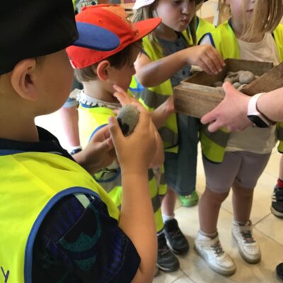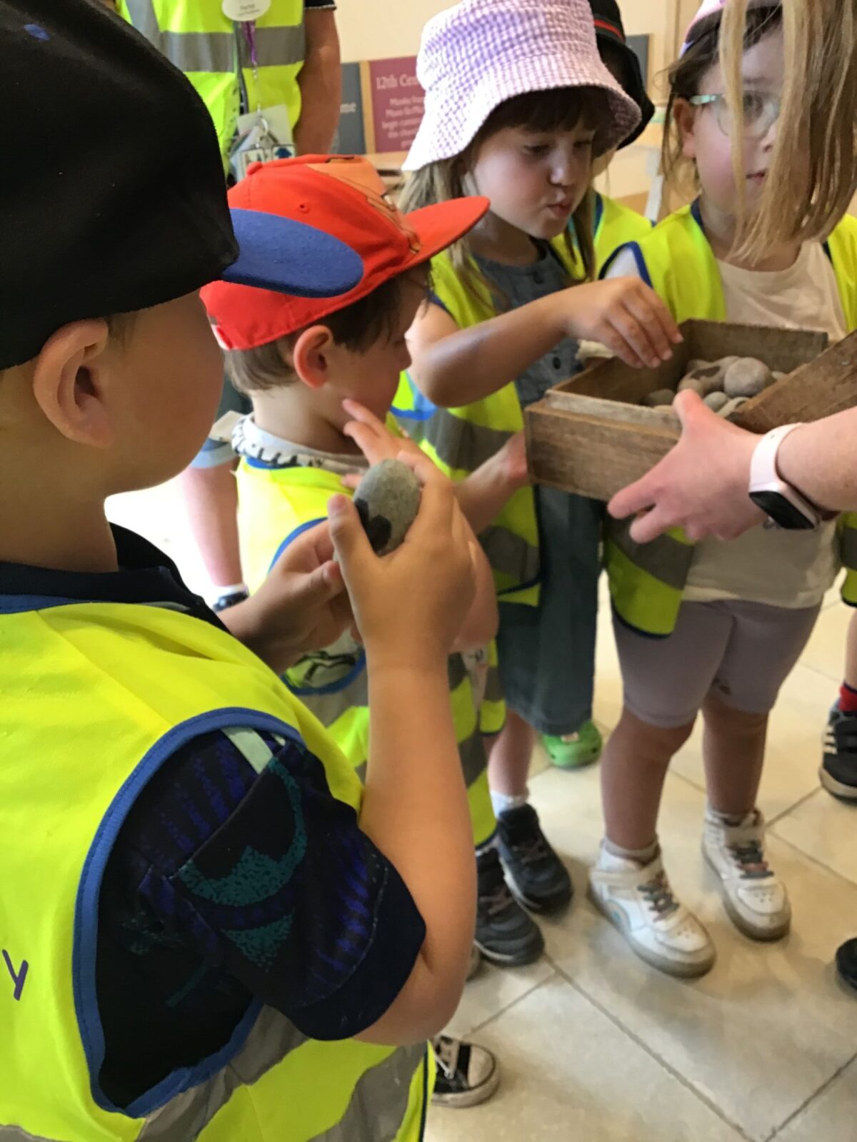 We cooled off in the shade of the learning hub and explored lots of Cornish stories. Kerry also told the children the story of Cormoran the giant which they were gripped by. She then surprised the children by opening her treasure chest and presenting each child with their own ‘giants heart’ stone. The children were enthralled by these and couldn’t believe they were allowed to take them home. Another memorable moment that the children have talked about long after the trip – was the semi circle of limpet shell that Kerry told them was a Giant’s toenail! This has really sparked their imaginations.
