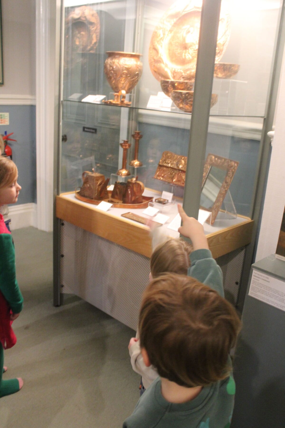 Next we went on a treasure hunt around the museum looking for photos on the treasure map. The photos were copper items that the children needed to find. They listened carefully to the rules in the museum to keep all the precious items safe such as using our ‘looking eyes’ and not our hands to explore, staying behind the ropes and not touching the glass. Also to use our walking feet. Everyone did ever so well. The children found the copper items and went on to find the next items which had clues such as ‘find something with wheels’ ‘find something you would wear’ etc.