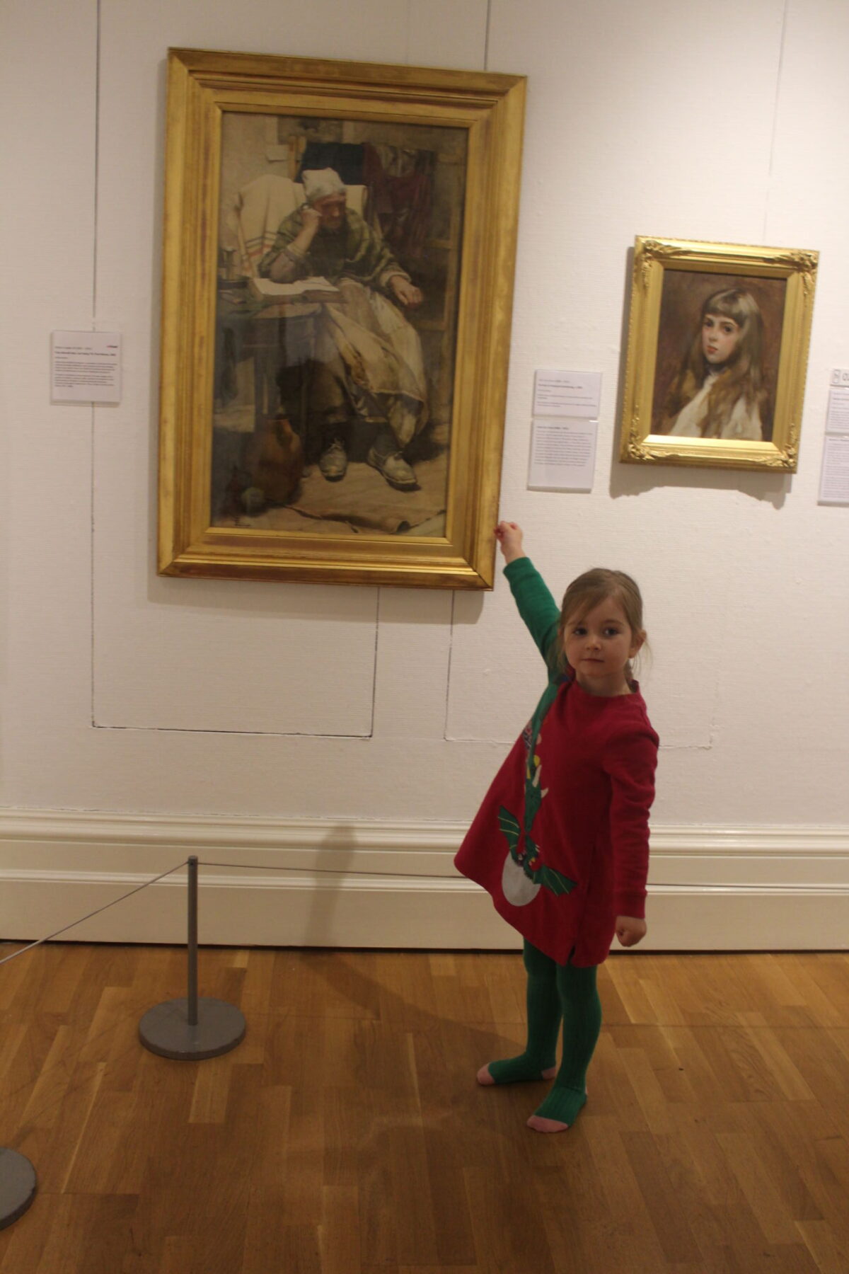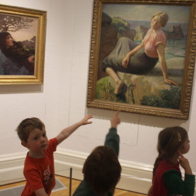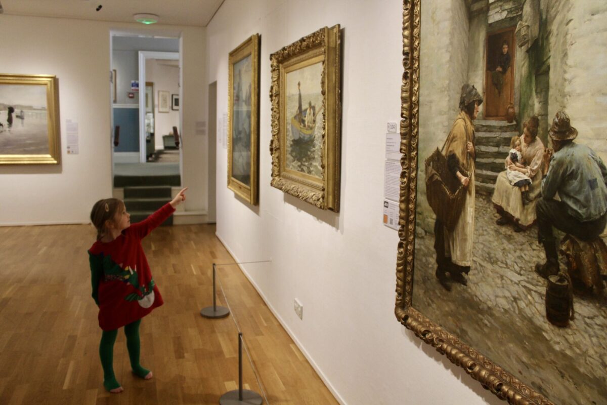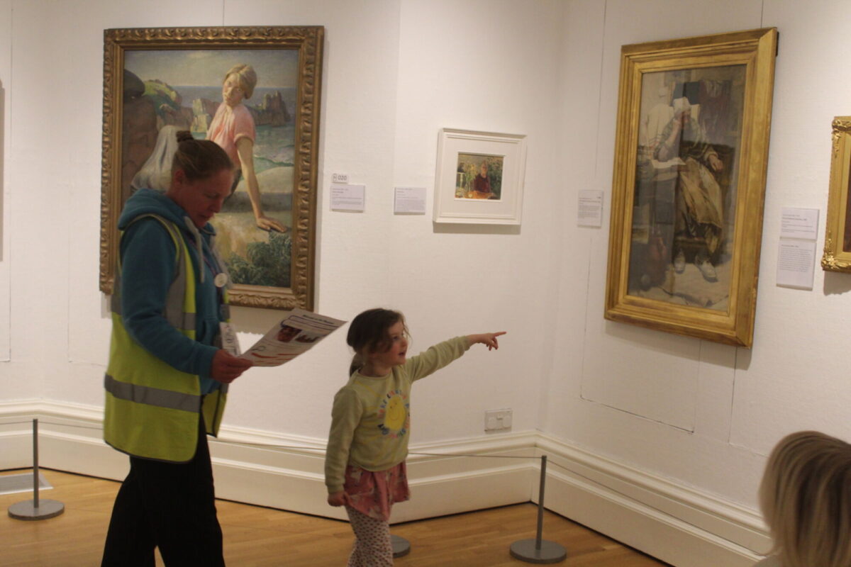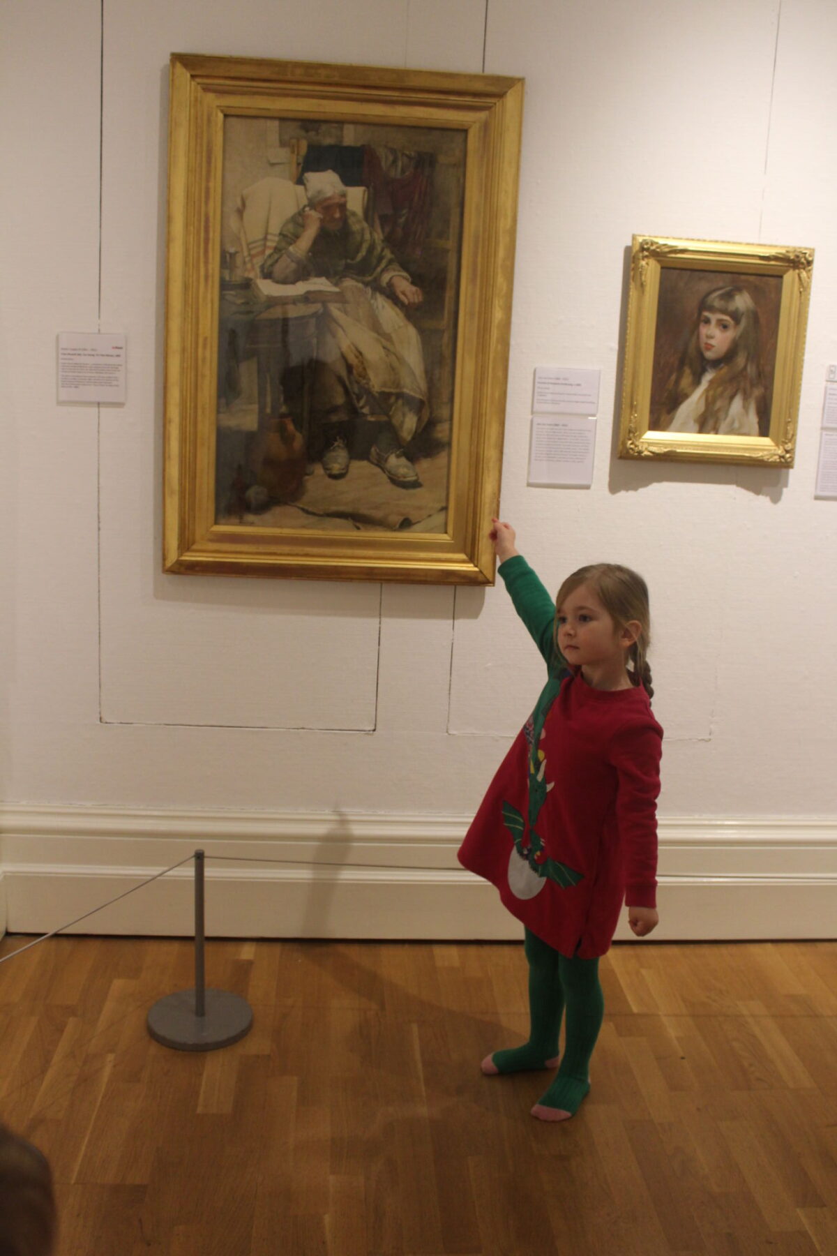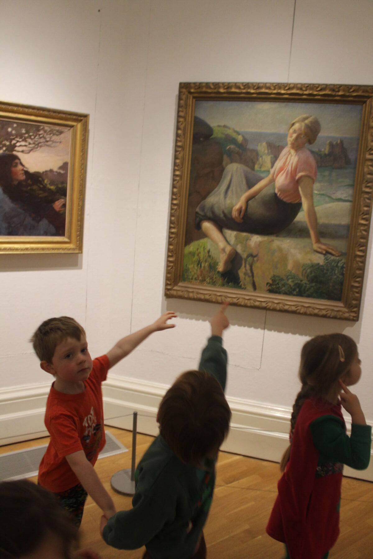 Our next part of the trip was to explore the gallery rooms downstairs and see what we could spot within the paintings. The children showed off their super listening and observation skills, quickly spotting the objects. They also did some very good fast excited walking rather than running to find the next items! They looked for things such as ‘a dog’ ‘hats’ ‘a horse’ ‘the sea’ ‘rocks’. All of these clues really encouraged them to look closely at the paintings and spot lots of details.