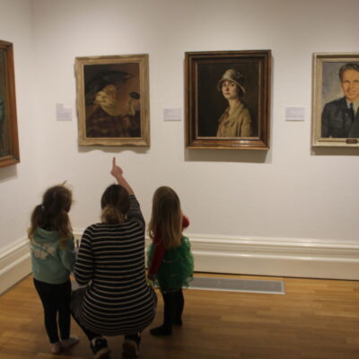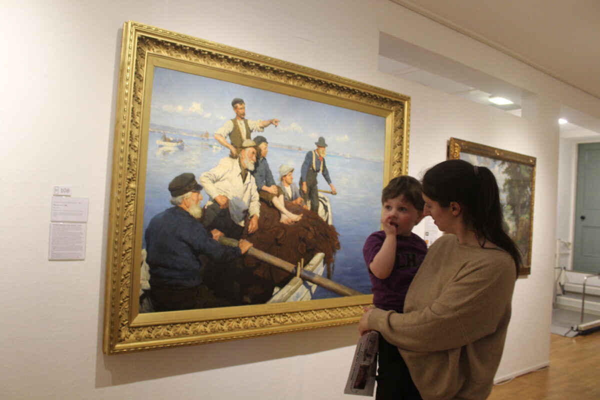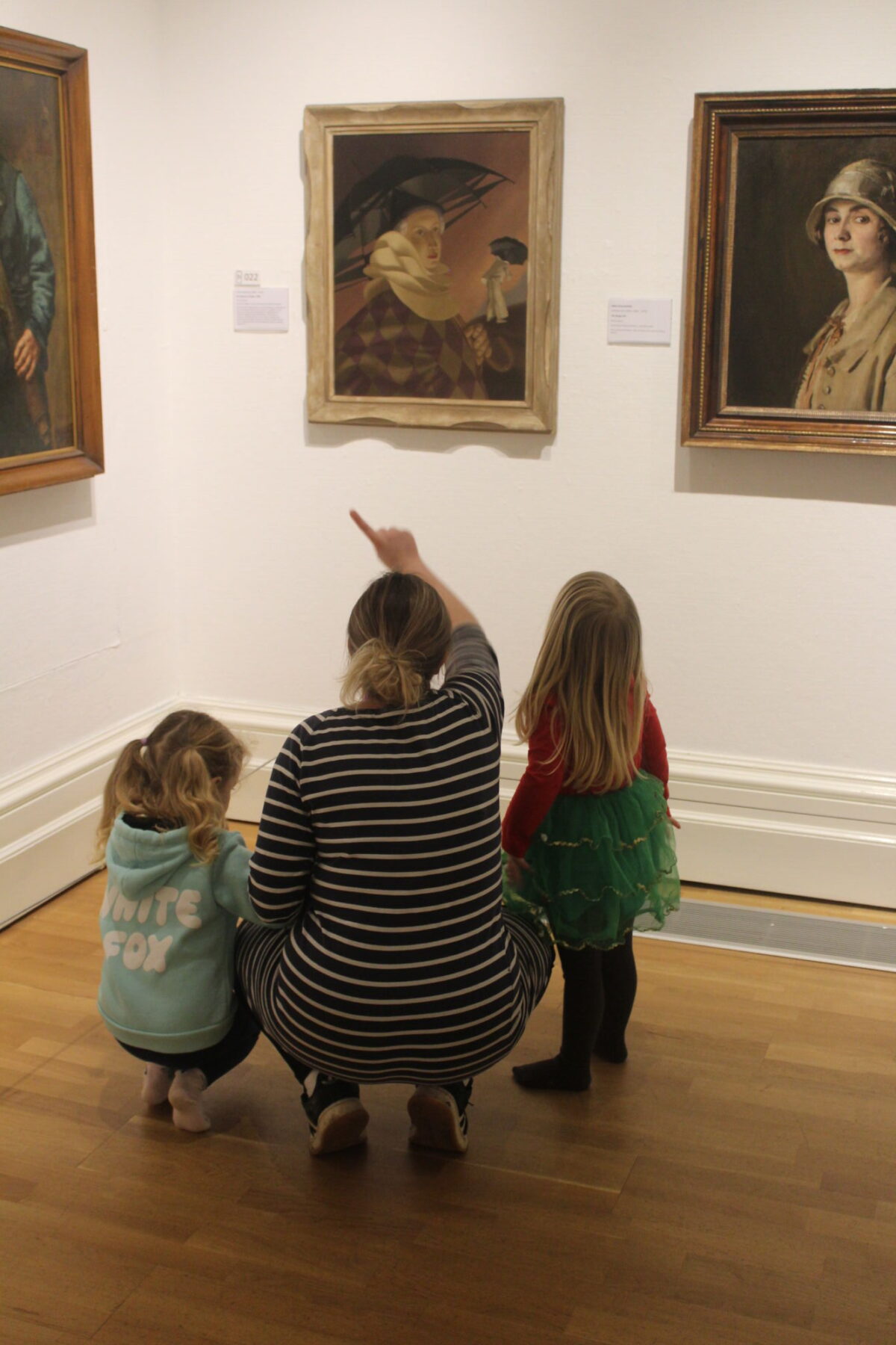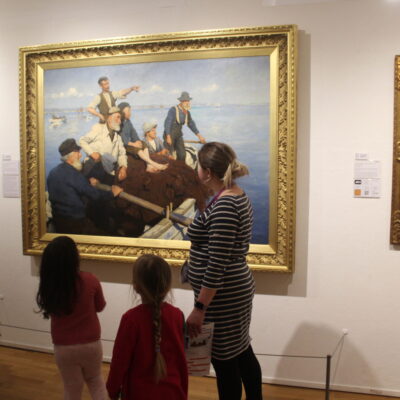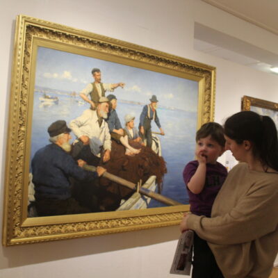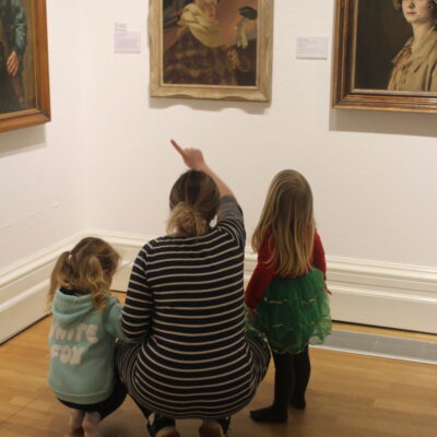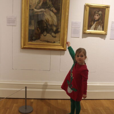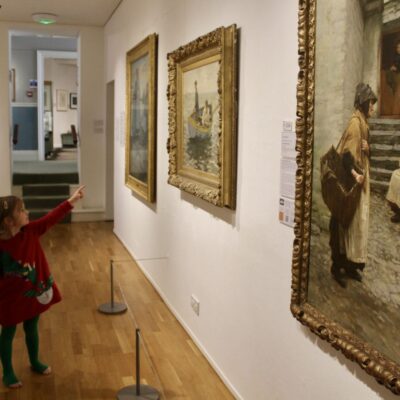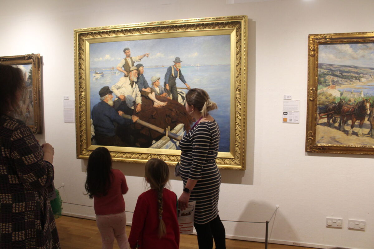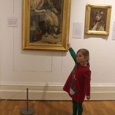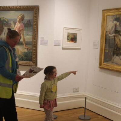 Our next part of the trip was to explore the gallery rooms downstairs and see what we could spot within the paintings. The children showed off their super listening and observation skills, quickly spotting the objects. They also did some very good fast excited walking rather than running to find the next items! They looked for things such as ‘a dog’ ‘hats’ ‘a horse’ ‘the sea’ ‘rocks’. All of these clues really encouraged them to look closely at the paintings and spot lots of details.