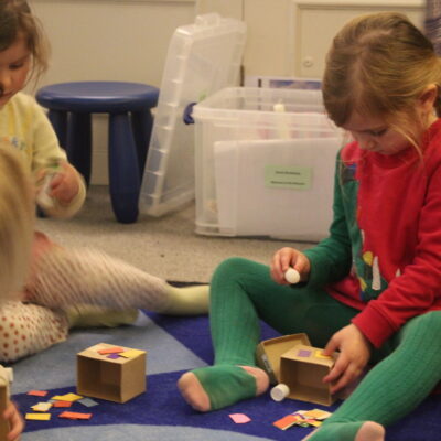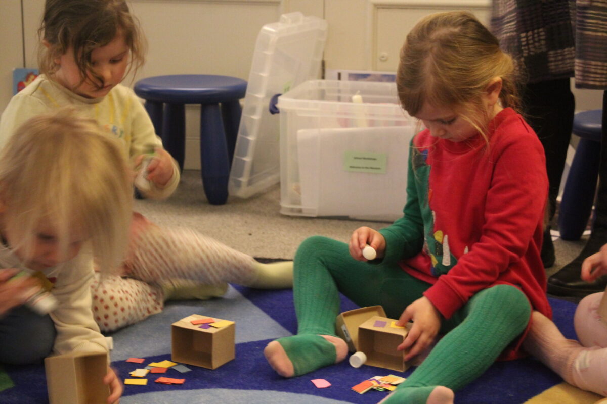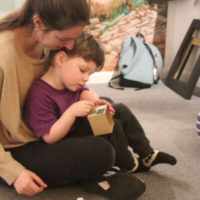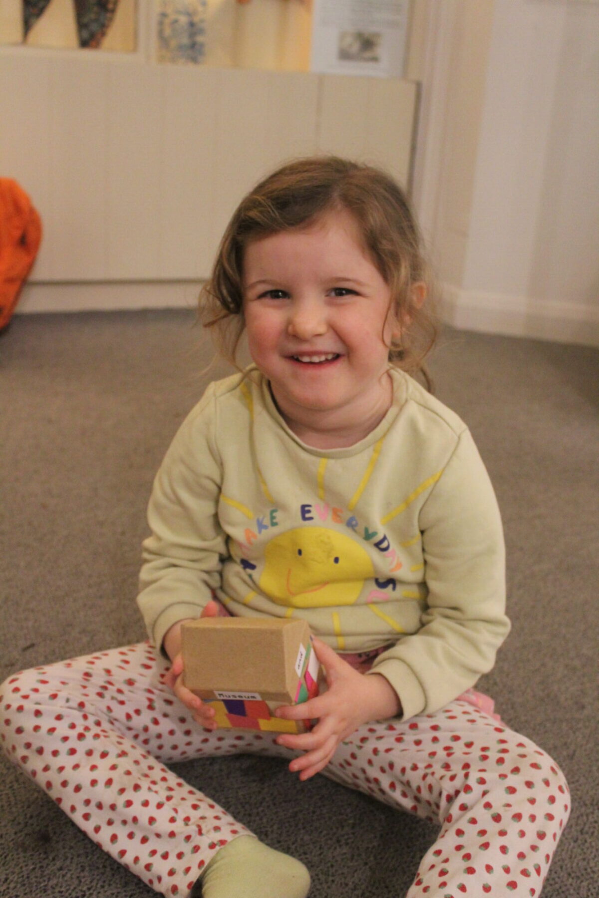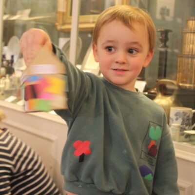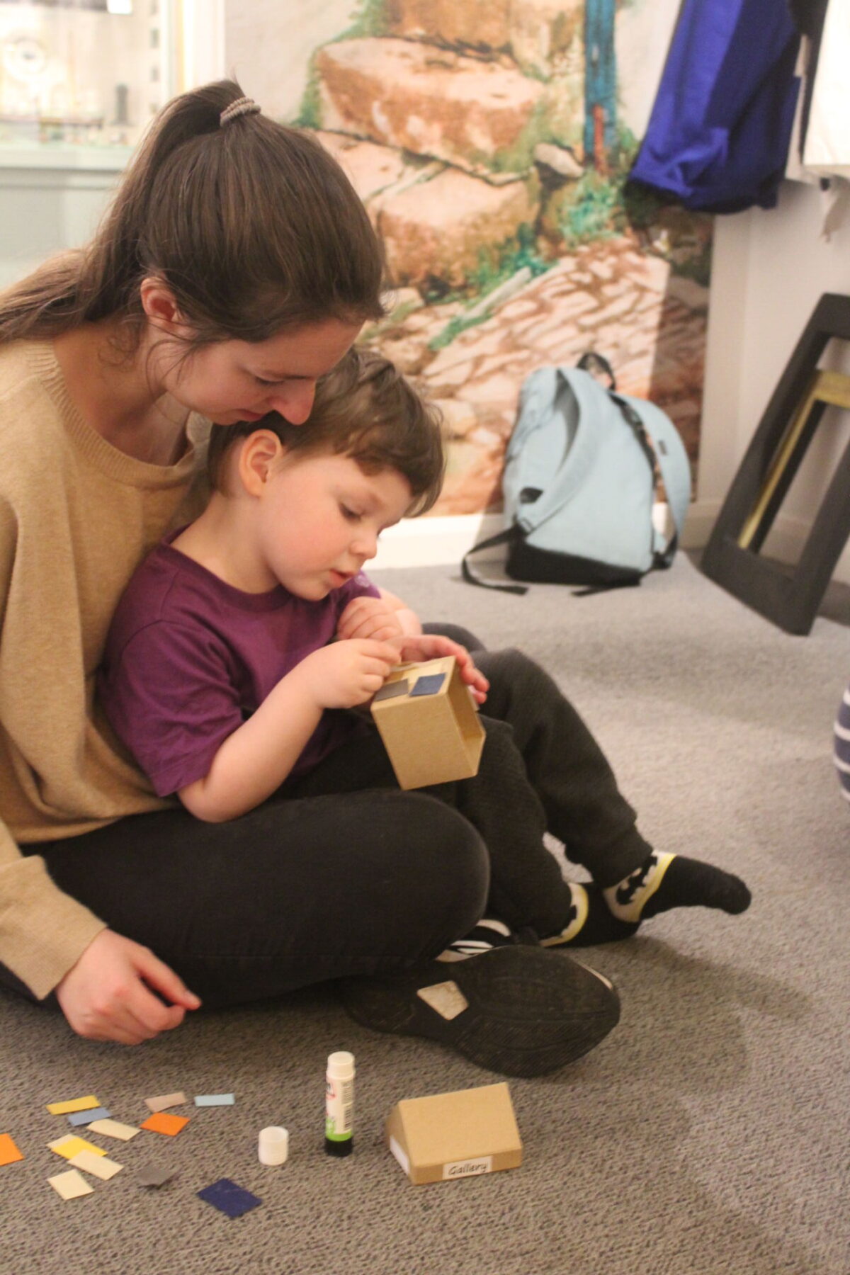 Our last activity was to create our own mini museum! The children loved this activity. Katie and Jo had prepared the activity so that the children each had their own named museum and a selection of decorations to create a mosaic pattern on the outside of their mini building. They were then able to choose two paintings to ‘hang’ inside their museum and they chose their favourite paintings from the museum. Everyone got stuck in with their crafting and looked ever so proud of their creations!