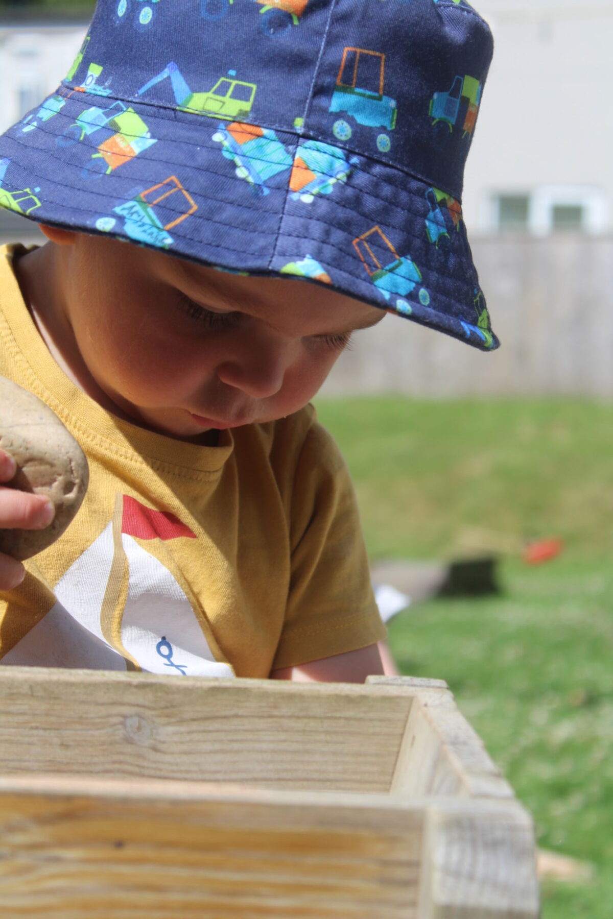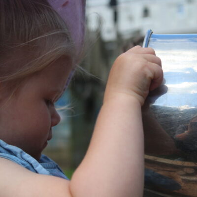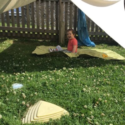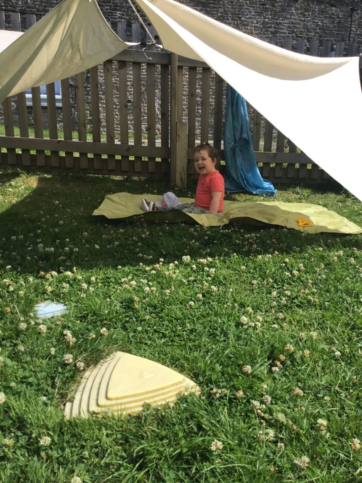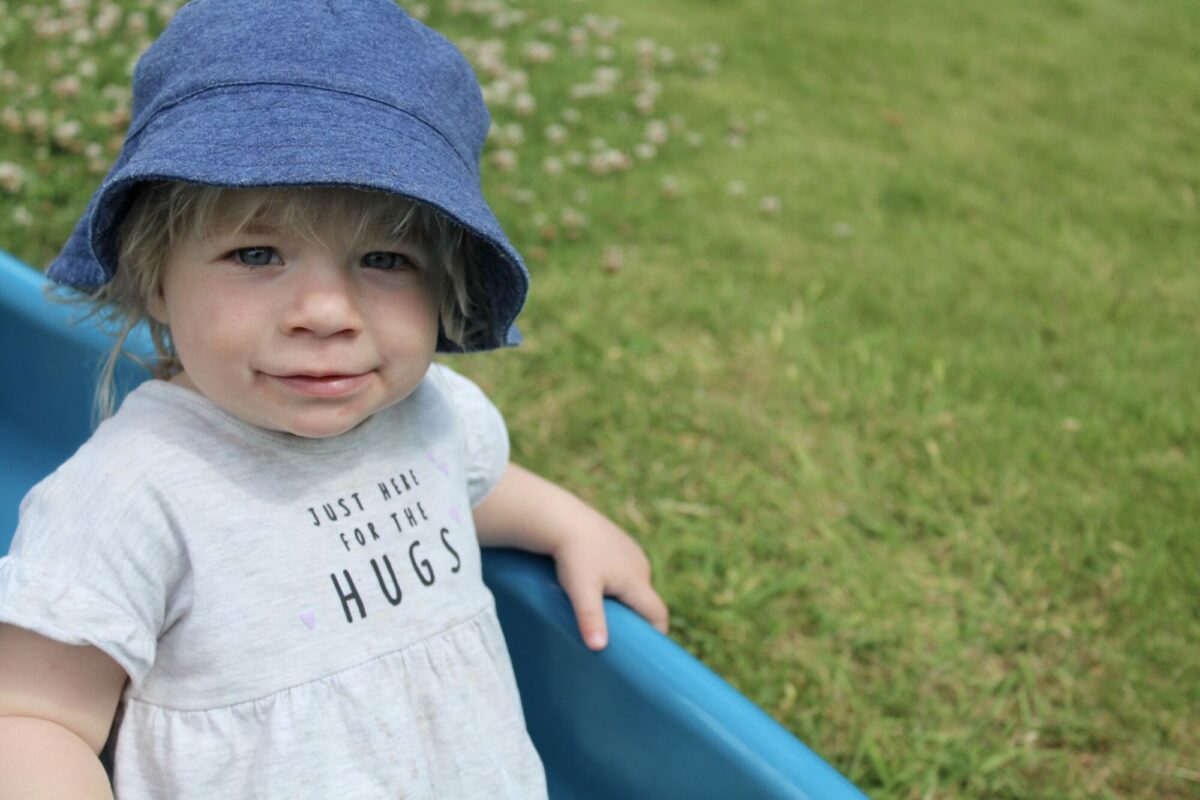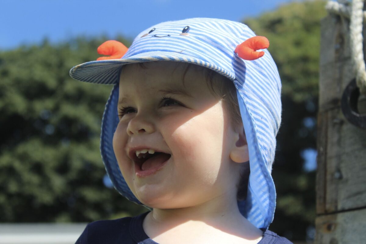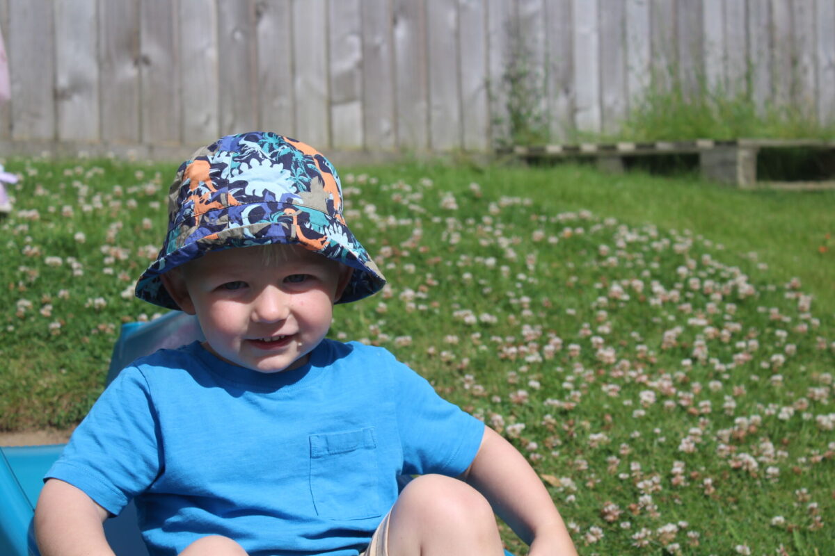 We love washing our herbs in our garden sink! Exploring the scents of herbs is really exciting. We love feeling the whoosh of sliding down our slide and using all our muscles to climb back up the slope to slide down again! We love creating dens to cool down in the shade. We develop our balancing skills on our balance pebbles and pirate ship. We develop our coordination and fine motor strength and control manipulating tools in the sandpit. We also cool down in the spray of the water hose!