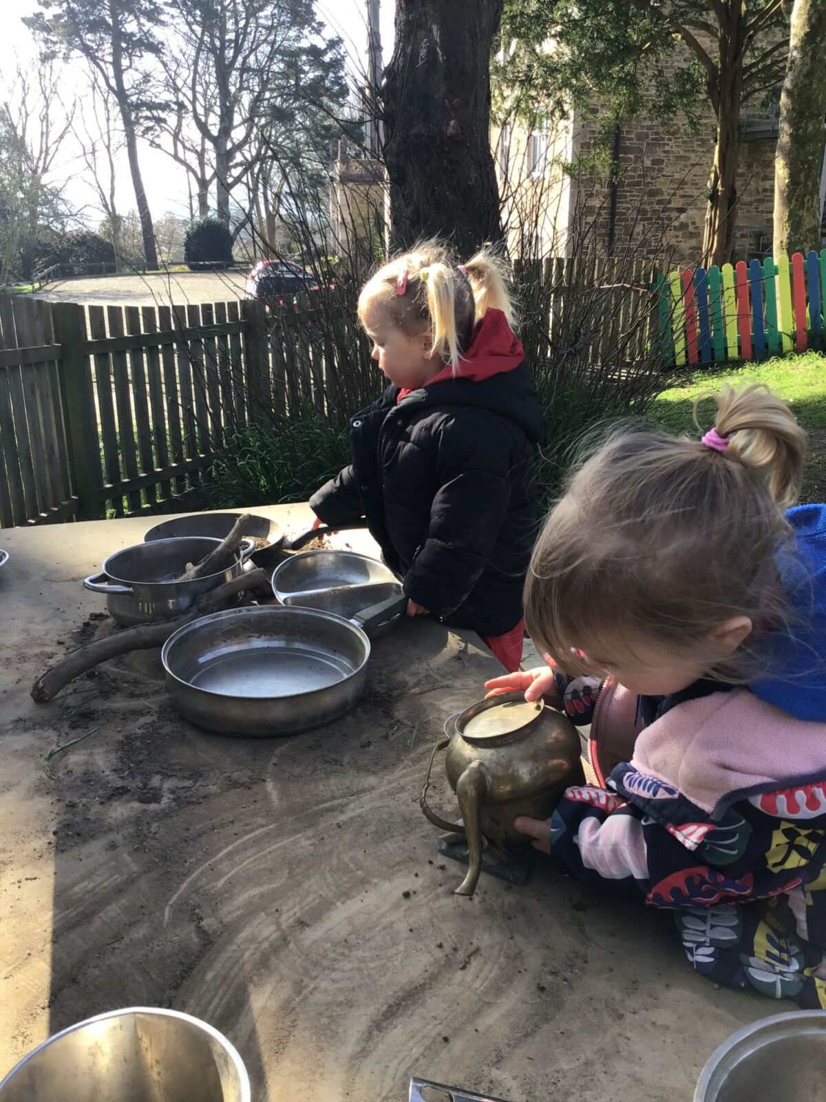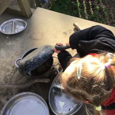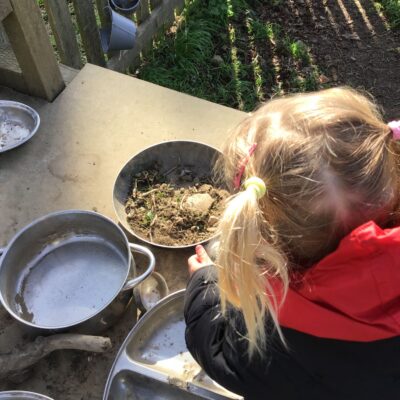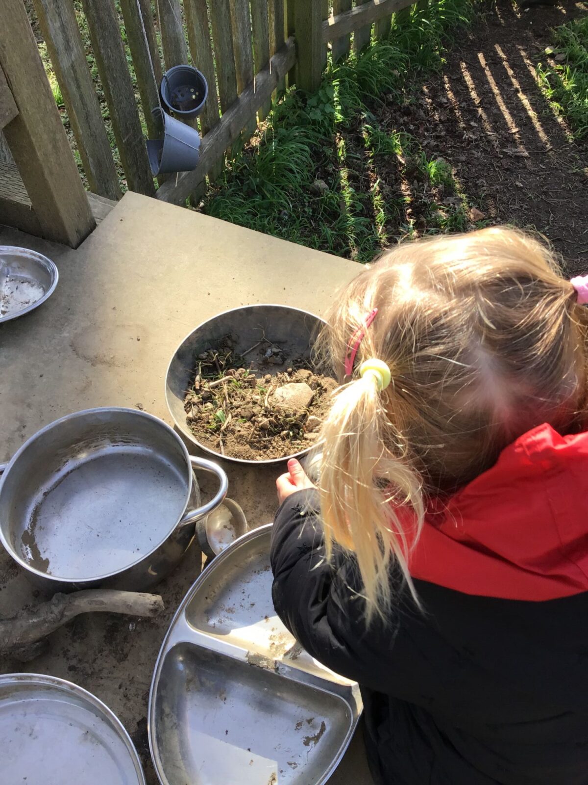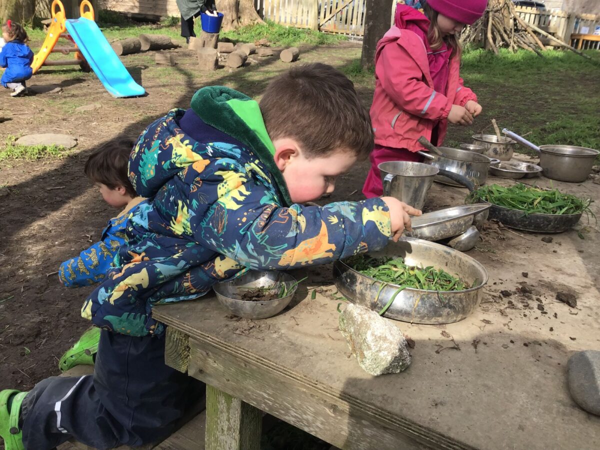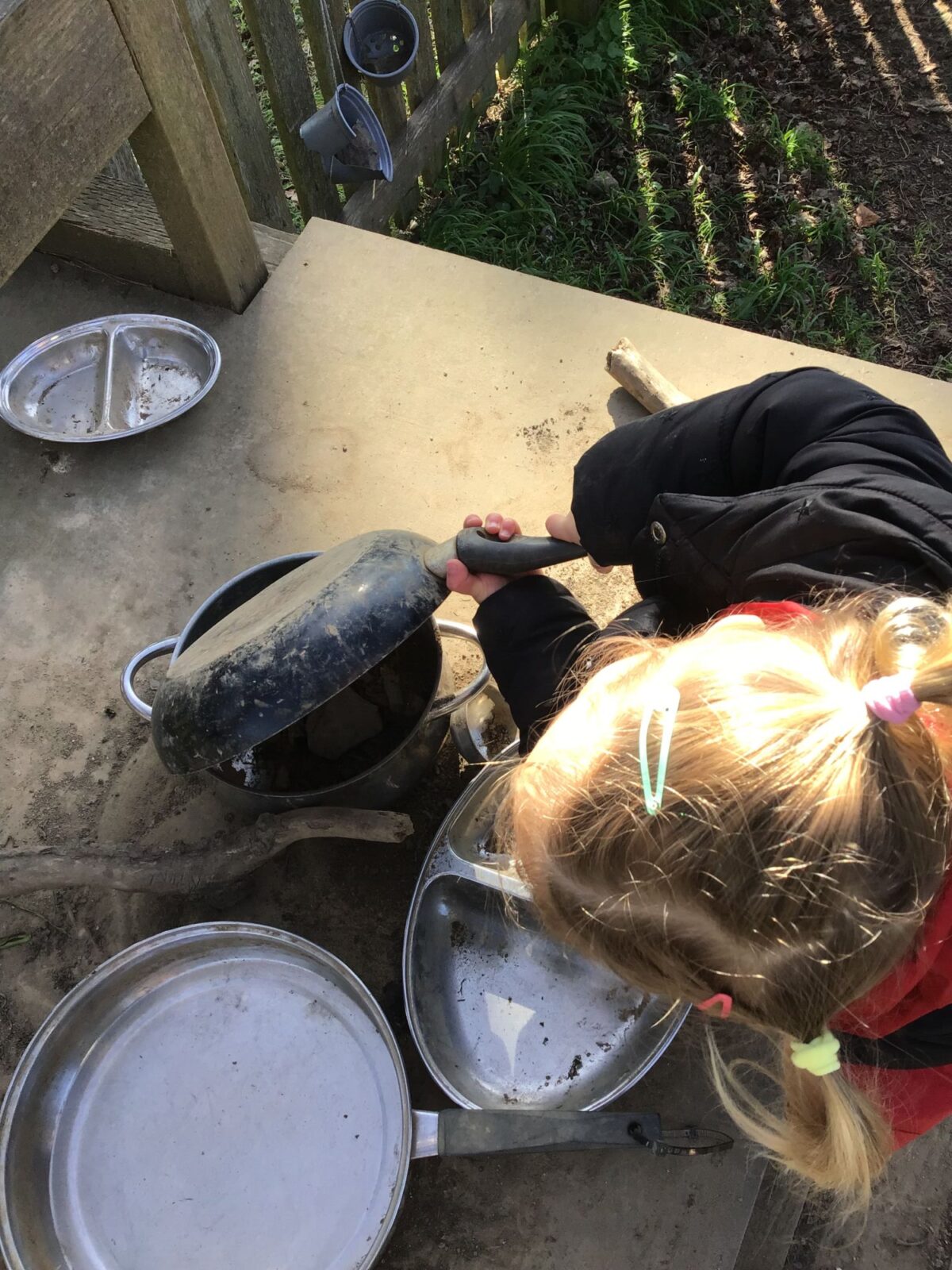 We offer a wide range of options on our mud kitchen menu! Just ask the children what they are cooking up today! We also like to collect our real duck eggs to use in our indoor kitchen and actually eat!
