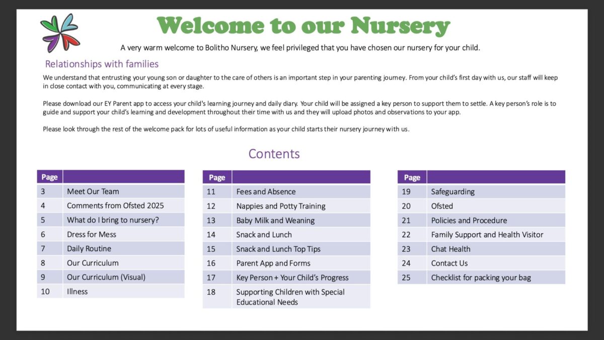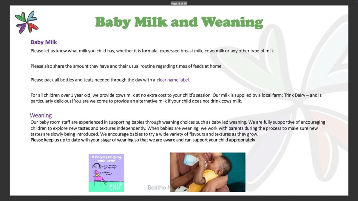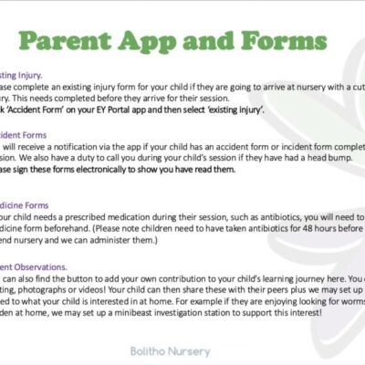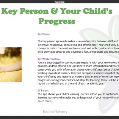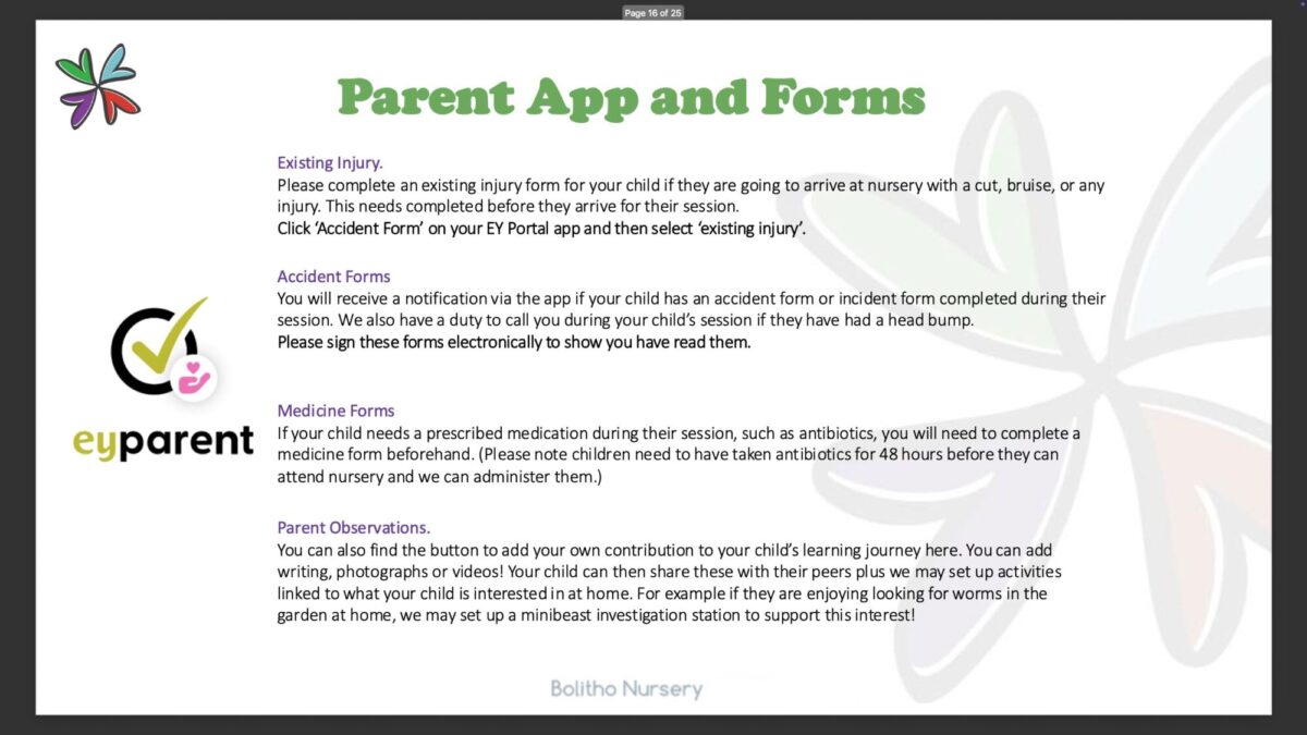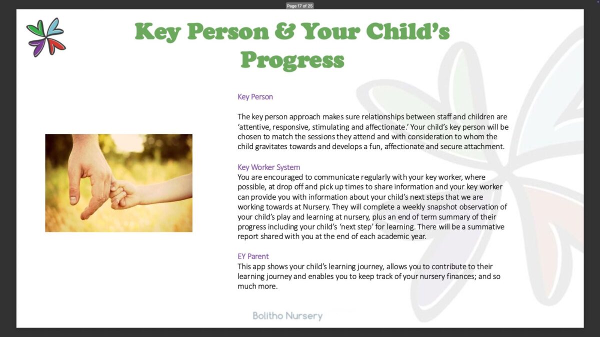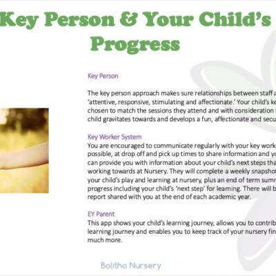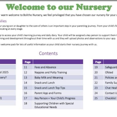 We have created a Family Welcome Pack for all our families to find useful information in one place. This is available for you to view via your EY Parent App, in the documents section, at anytime. We will also signpost you to it during your settling meeting and share a paper copy with you during your child’s first settling session.