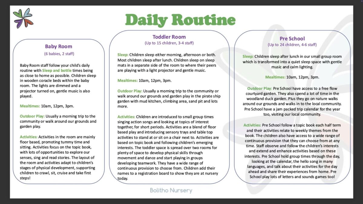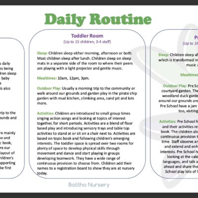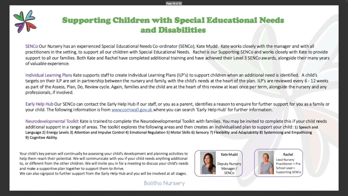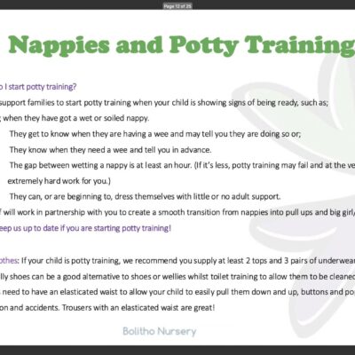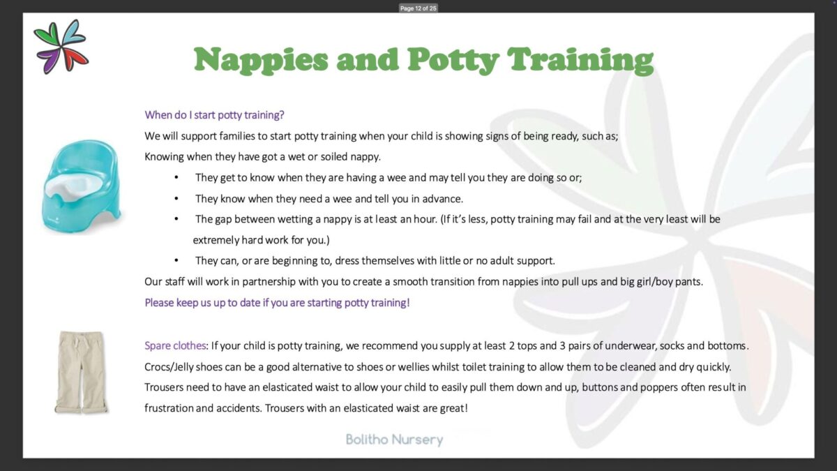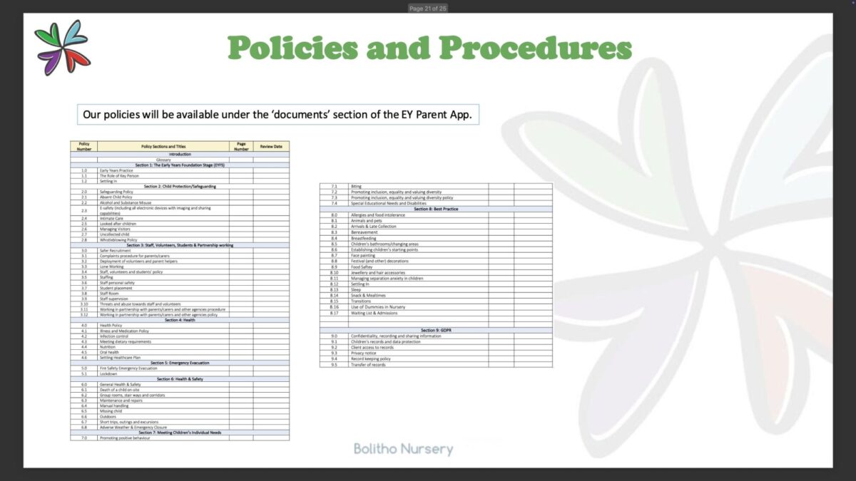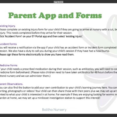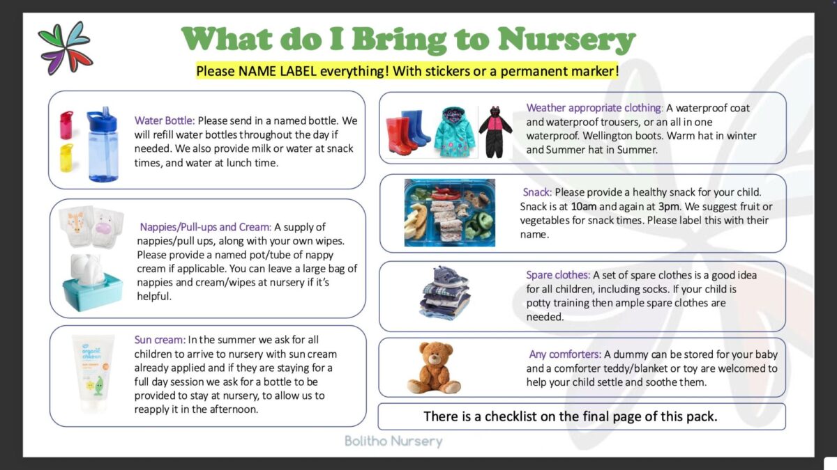 We have created a Family Welcome Pack for all our families to find useful information in one place. This is available for you to view via your EY Parent App, in the documents section, at anytime. We will also signpost you to it during your settling meeting and share a paper copy with you during your child’s first settling session.